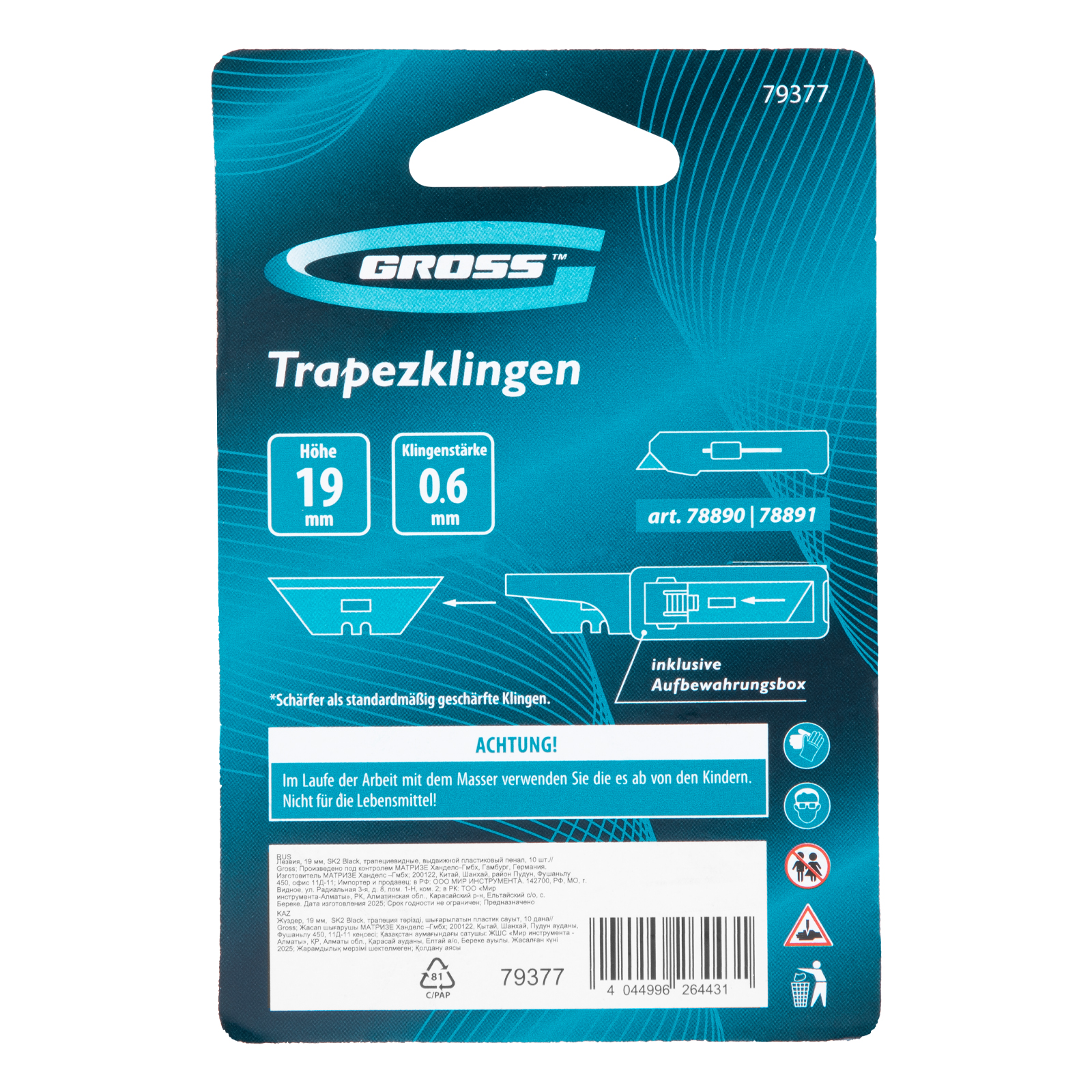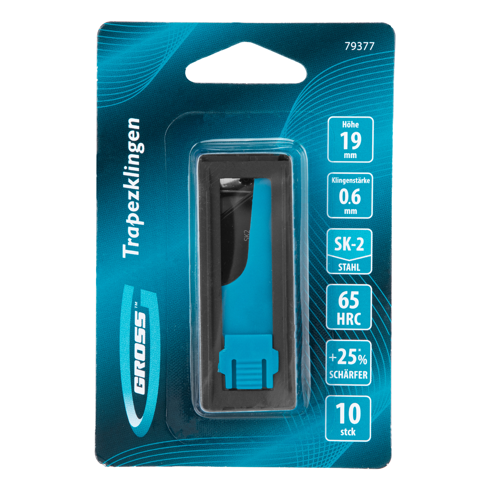 Лезвия, 19 мм, SK2 Black, трапециевидные, выдвижной пластиковый пенал, 10 шт. Gross