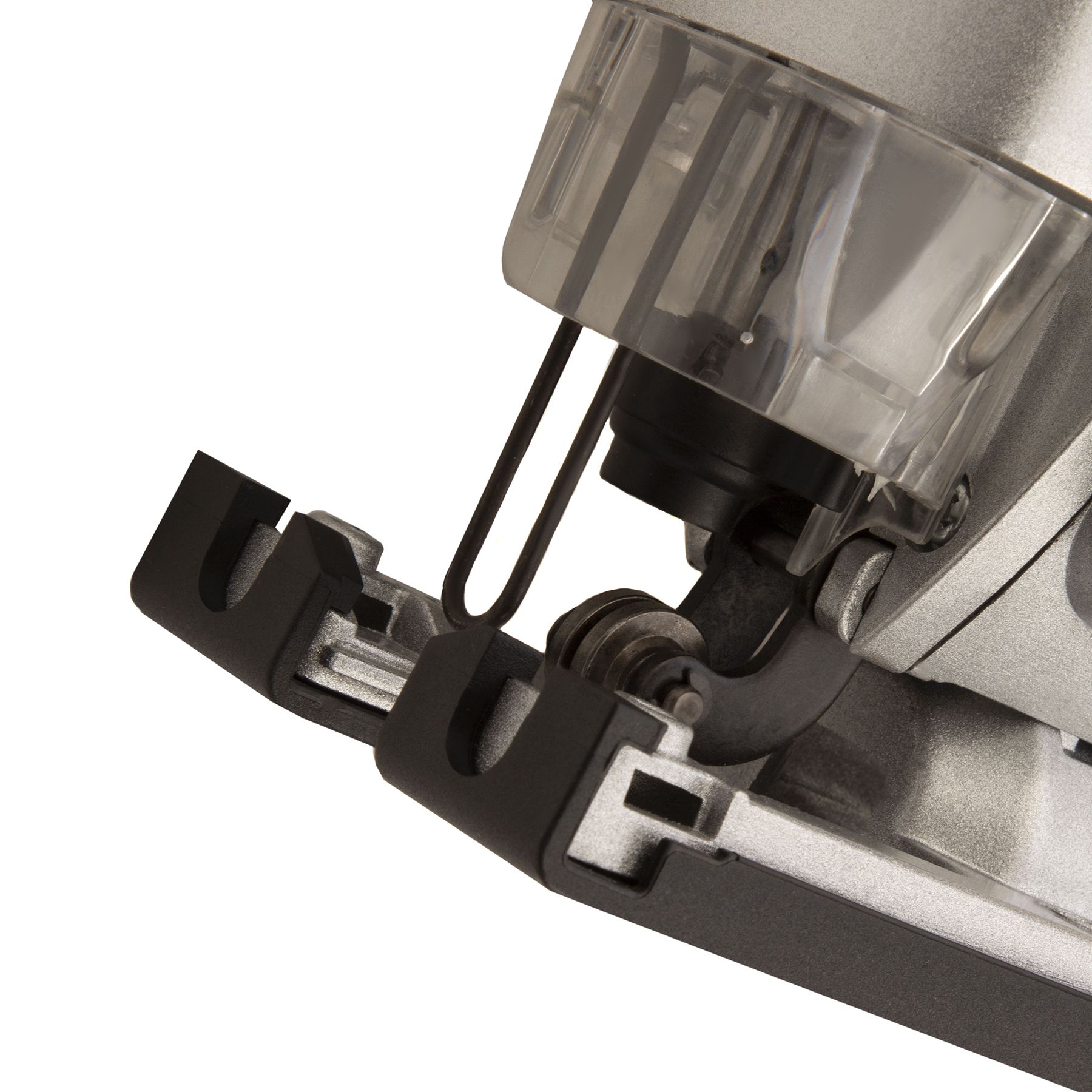 - Безопасность — прозрачный поворотный щиток и металлический ограничитель защищают мастера от травм и разлетающихся опилок.
