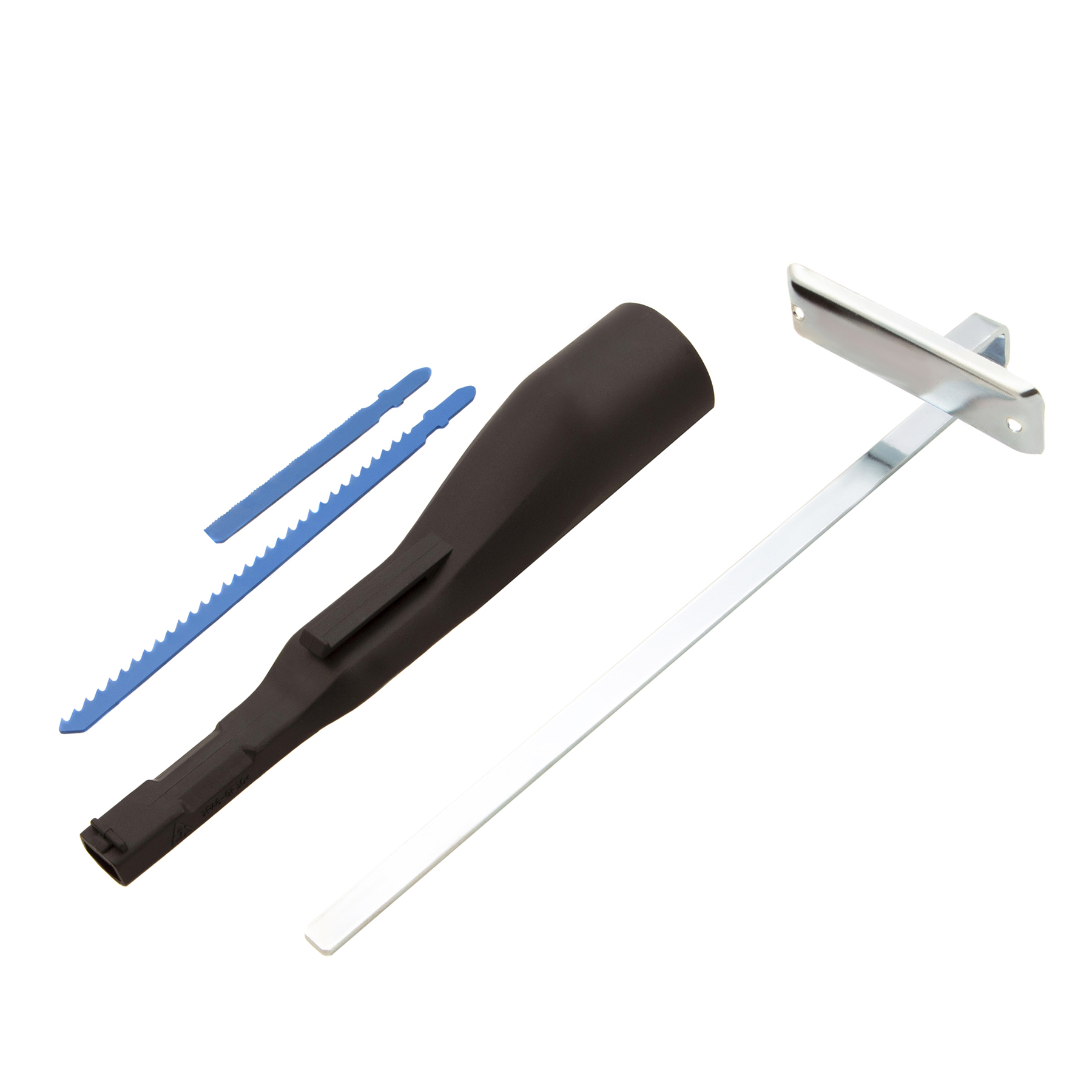 - Полная комплектация — лобзик поставляется с направляющей, пилками по дереву и металлу, шестигранным ключом, адаптером для подключения пылесоса и запасными угольными щетками.