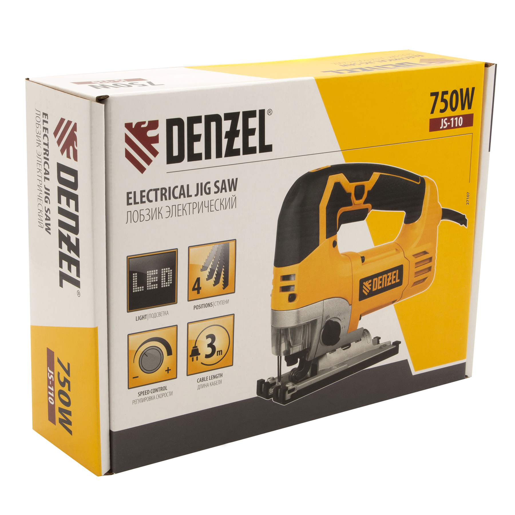 Электрический лобзик Denzel JS-110 27107 мощностью 750 Вт предназначен для прямого и фигурного реза листовых материалов из металла, древесины, и пластмассы, а также для вырезки варочных панелей или отверстий под мойки в столешницах. Это наиболее производительная модель в линейке производителя. Электродвигатель Denzel обеспечивает частоту хода пильного полотна в диапазоне 1100-3000 ход/мин. Максимальная глубина пропила составляет: до 110 мм для древесины, до 25 мм для цветных металлов и до 10 мм для стали. Угол наклона подошвы регулируется, что позволяет совершать пропилы под углом до 45°. Лобзик подключается к сети, поэтому время работы не ограничено.