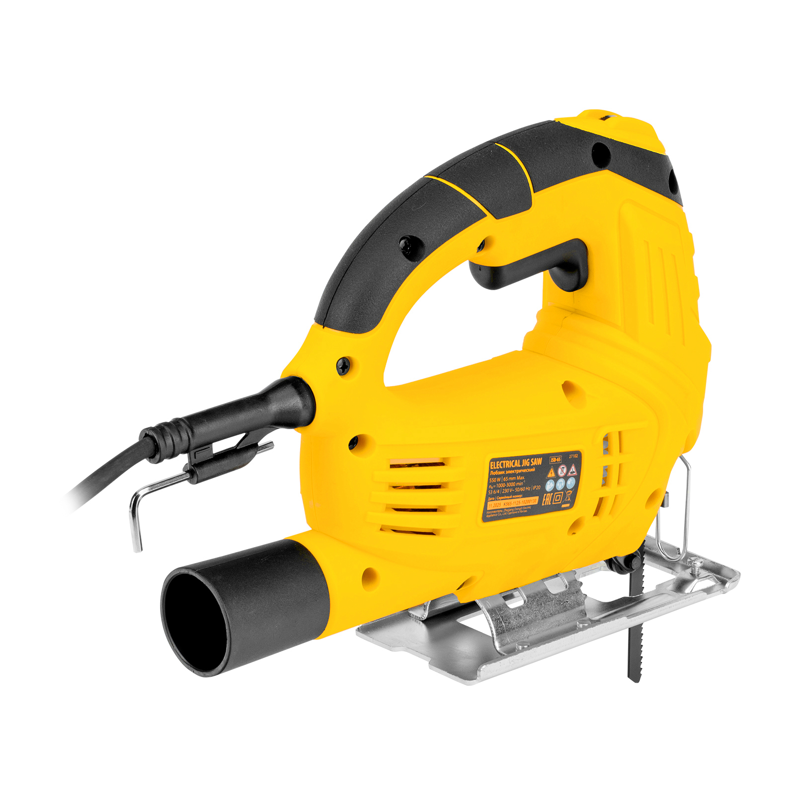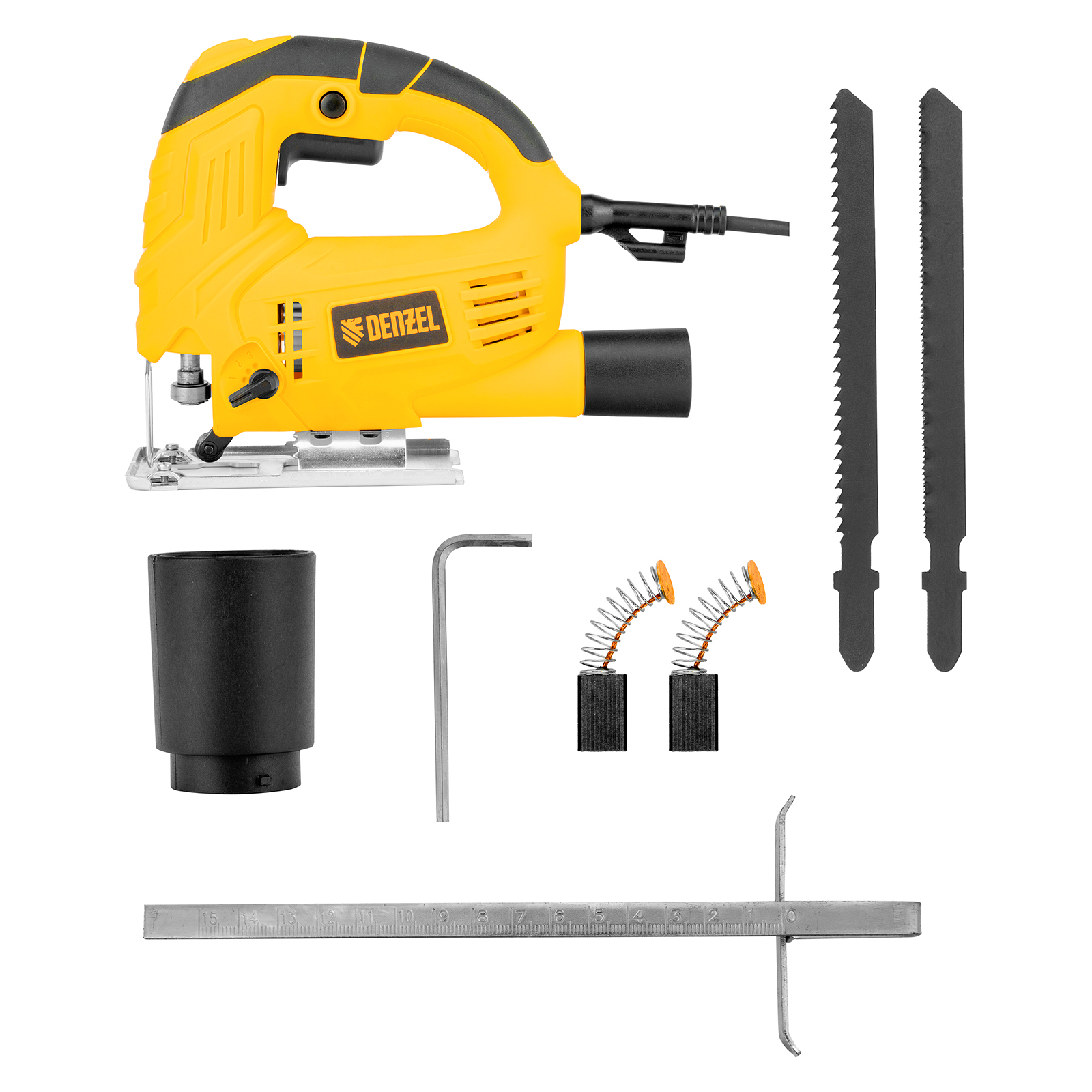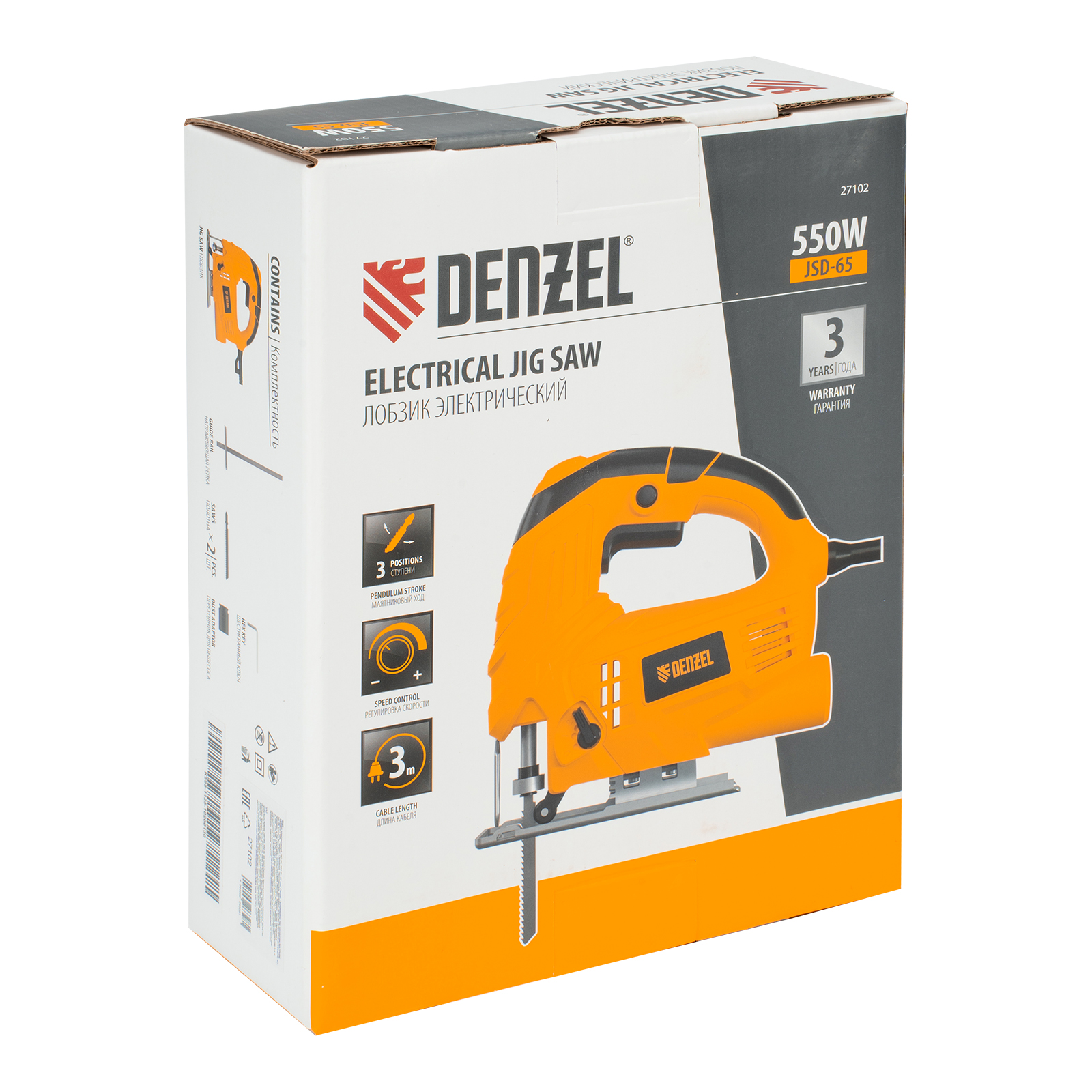 Электрический лобзик Denzel JSD-65 27102 мощностью 550 Вт обеспечивает глубину пропила в древесине до 65 мм, также позволяет выполнять прямой и фигурный рез металлических и пластиковых листовых материалов. Максимальная глубина пропила в стали составляет 8 мм, в цветном металле — 10 мм. Частота хода пилки составляет 1000-3000 ход/мин, маятниковый ход повышает удобство обработки древесины. В конструкции предусмотрен патрубок для подключения пылесоса — такое решение позволяет поддерживать чистоту на рабочем месте. Лобзик пригодится для проведения строительных и ремонтных работ, будет полезен в слесарной мастерской и в быту.