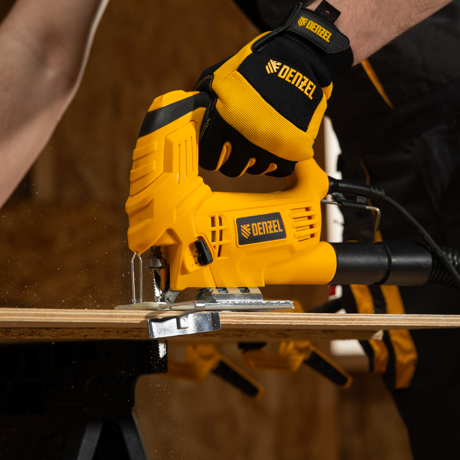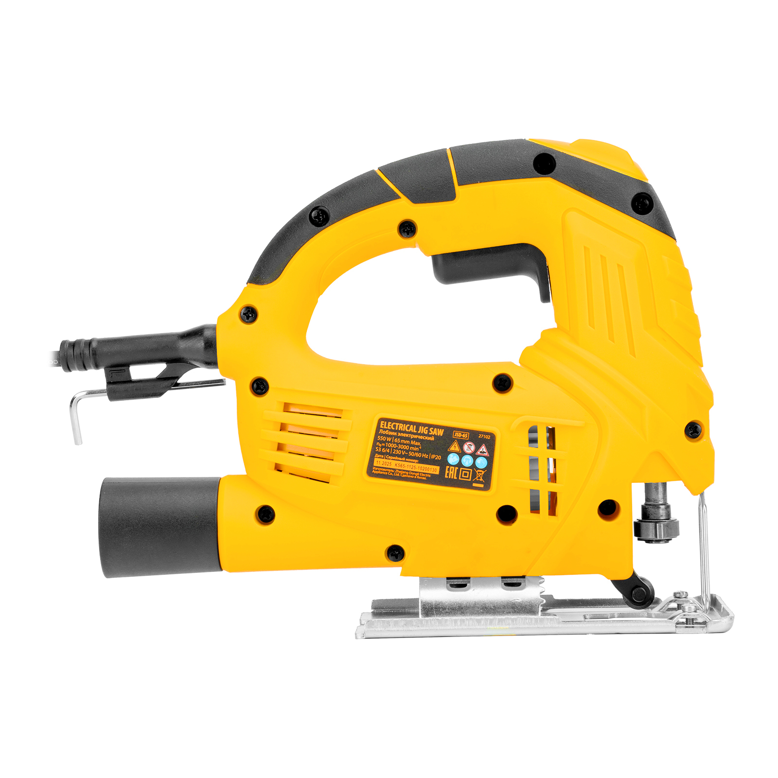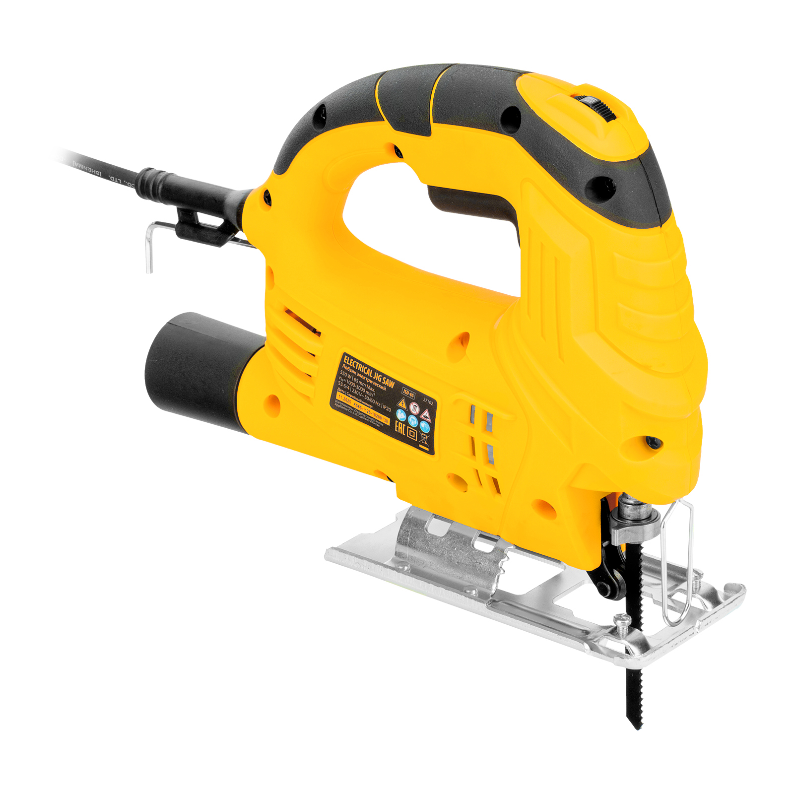 Электрический лобзик Denzel JSD-65 27102 мощностью 550 Вт обеспечивает глубину пропила в древесине до 65 мм, также позволяет выполнять прямой и фигурный рез металлических и пластиковых листовых материалов. Максимальная глубина пропила в стали составляет 8 мм, в цветном металле — 10 мм. Частота хода пилки составляет 1000-3000 ход/мин, маятниковый ход повышает удобство обработки древесины. В конструкции предусмотрен патрубок для подключения пылесоса — такое решение позволяет поддерживать чистоту на рабочем месте. Лобзик пригодится для проведения строительных и ремонтных работ, будет полезен в слесарной мастерской и в быту.