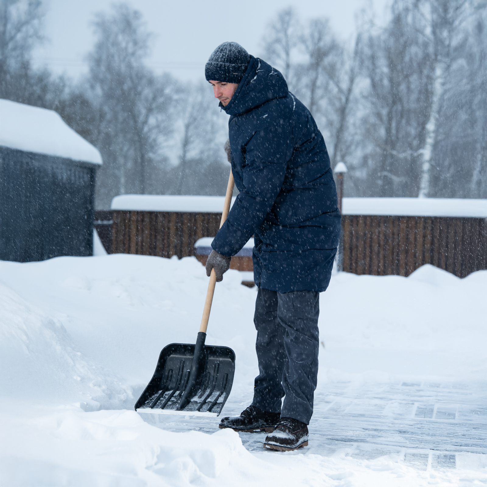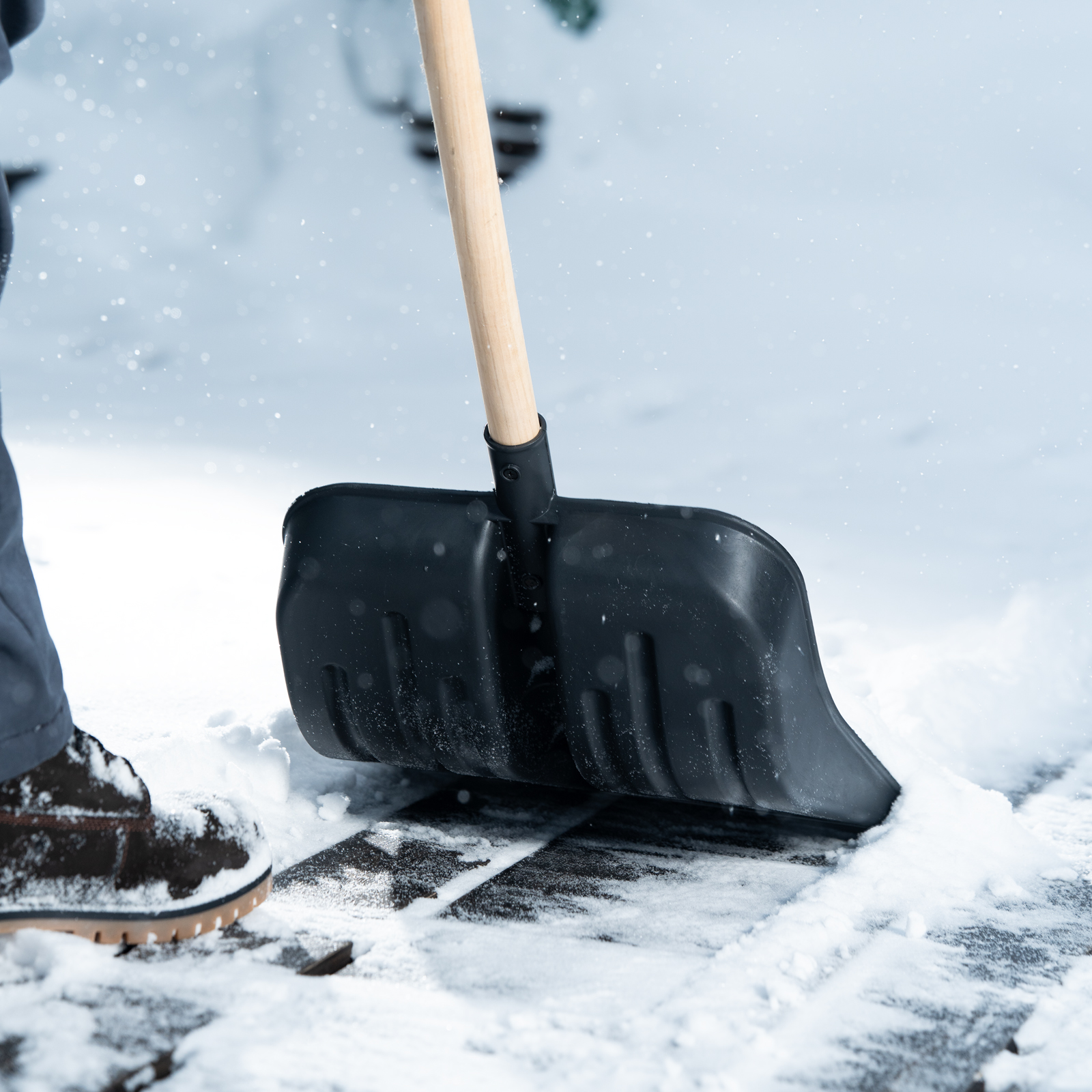 - Эффективная работа — углубленный ковш с бортиками вмещает много снега, защитная накладка из алюминиевого сплава предотвращает износ кромки и облегчает очистку слежавшегося снега и наста.