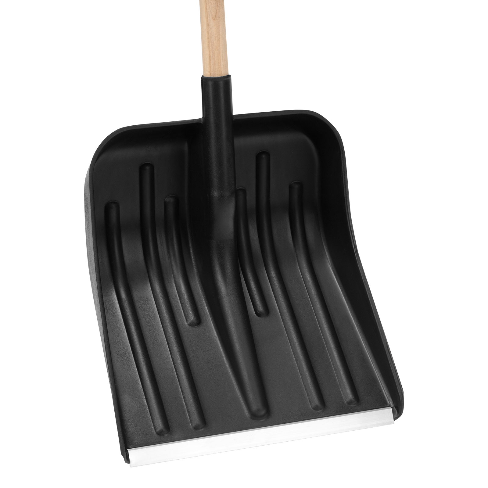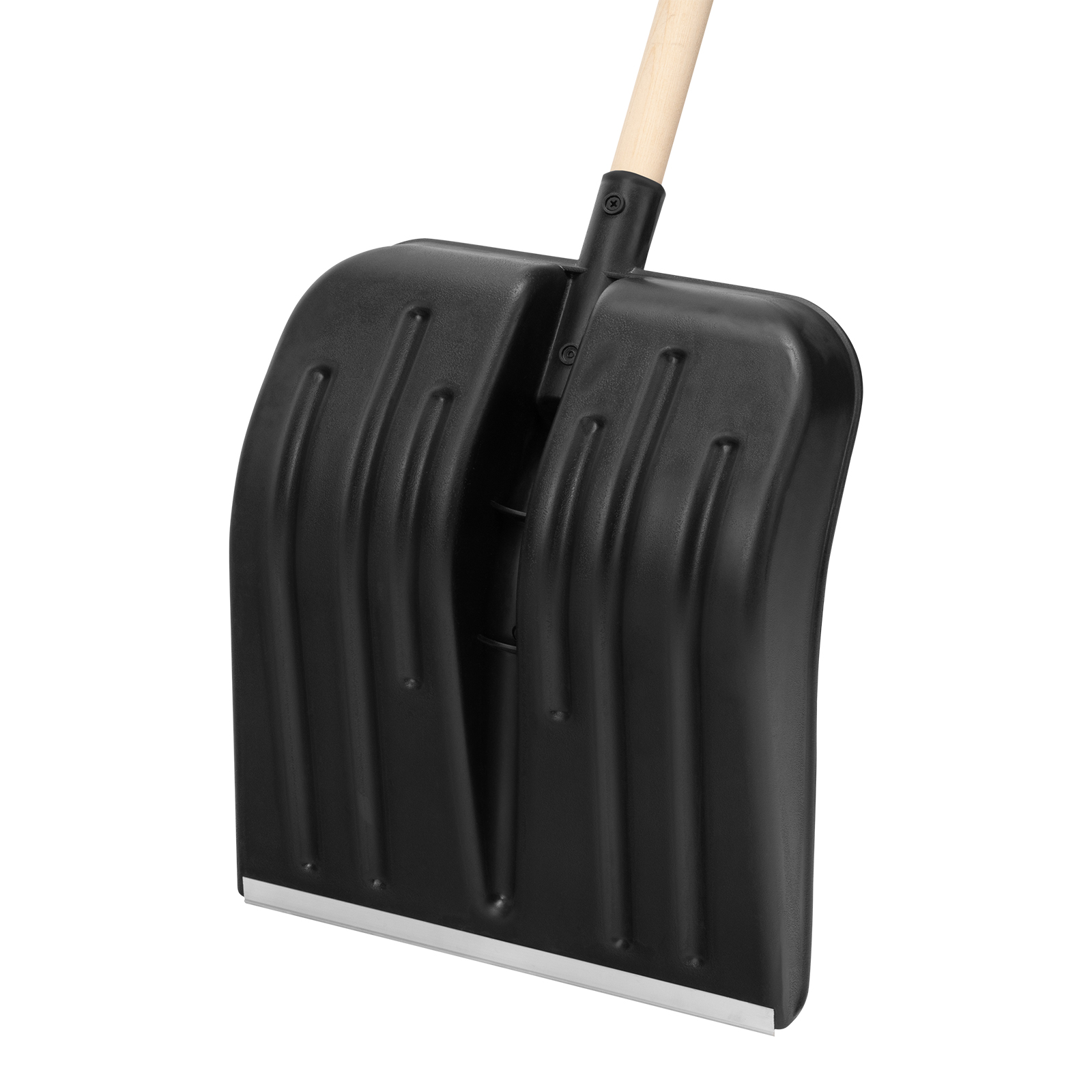 - Эффективная работа — углубленный ковш с бортиками вмещает много снега, защитная накладка из алюминиевого сплава предотвращает износ кромки и облегчает очистку слежавшегося снега и наста.