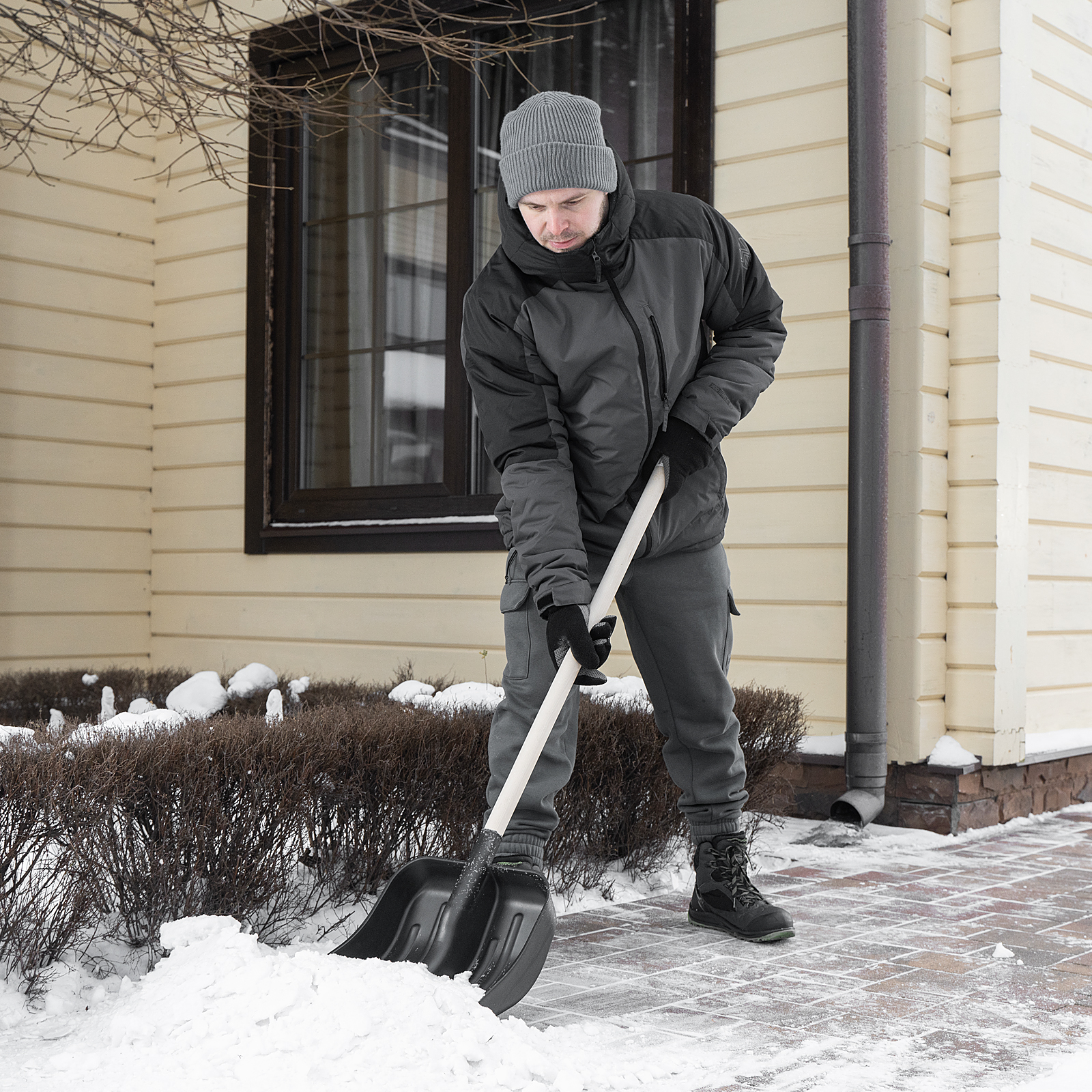 Пластиковая лопата Сибртех 61566 размером 360 х 405 х 1550 мм, с деревянным черенком высшего сорта, облегчает уборку снега и позволяет расчистить дорожки на загородном участке, выезд из гаража и т.д. Длина инструмента 1550 мм позволяет снизить нагрузку на спину, что удобно для длительной работы. Лопата поставляется в разобранном виде (ковш и черенок).