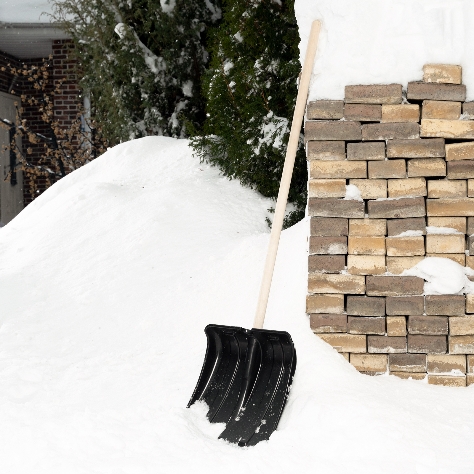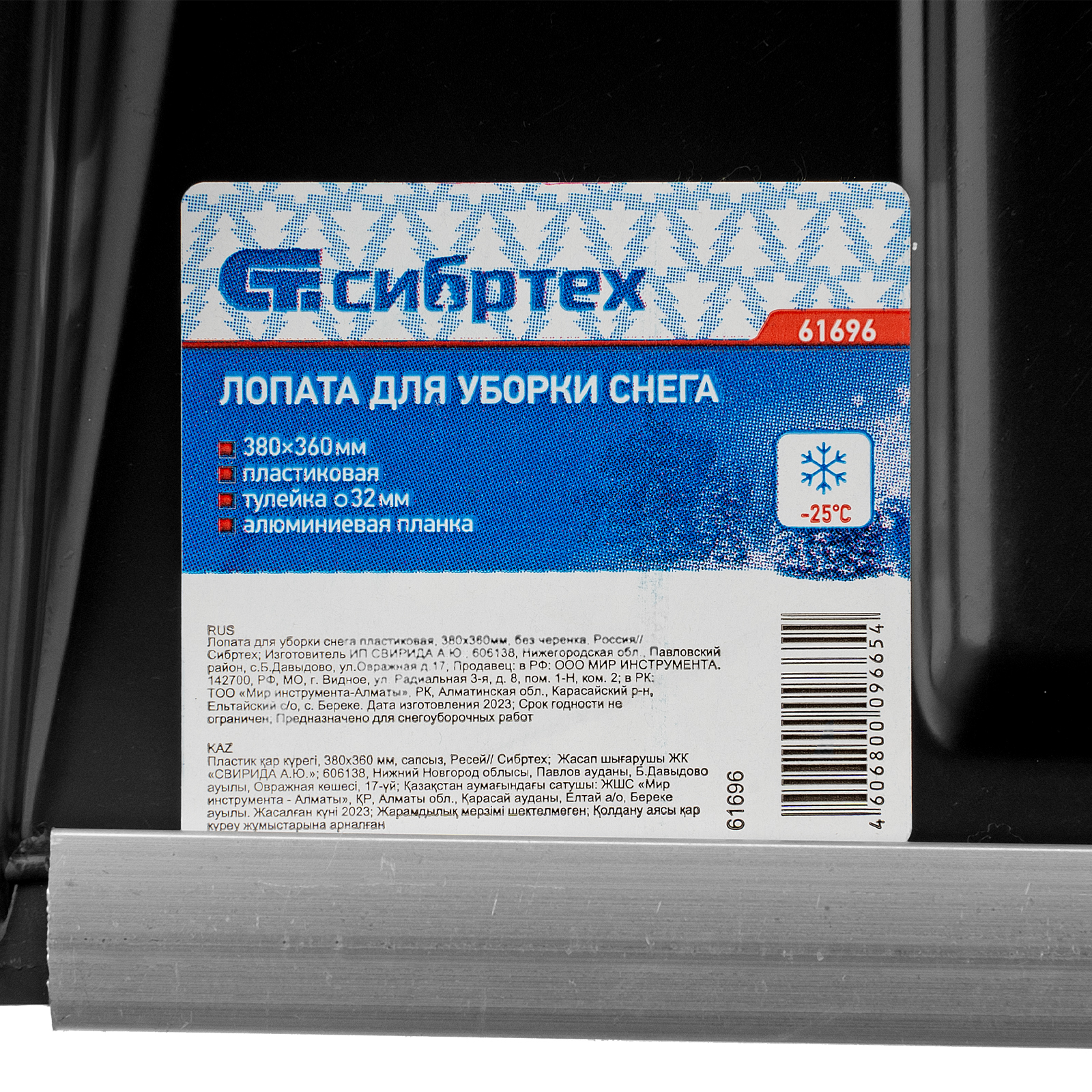 Пластиковая лопата для уборки снега Сибртех 61696 размером 380 х 360 мм, без черенка, предназначена для расчистки пространства перед подъездом и гаражом, дорожек, тротуаров после снегопада. Углубленный ковш позволяет захватывать и перемещать большое количества снега, обеспечивая эффективность работы.