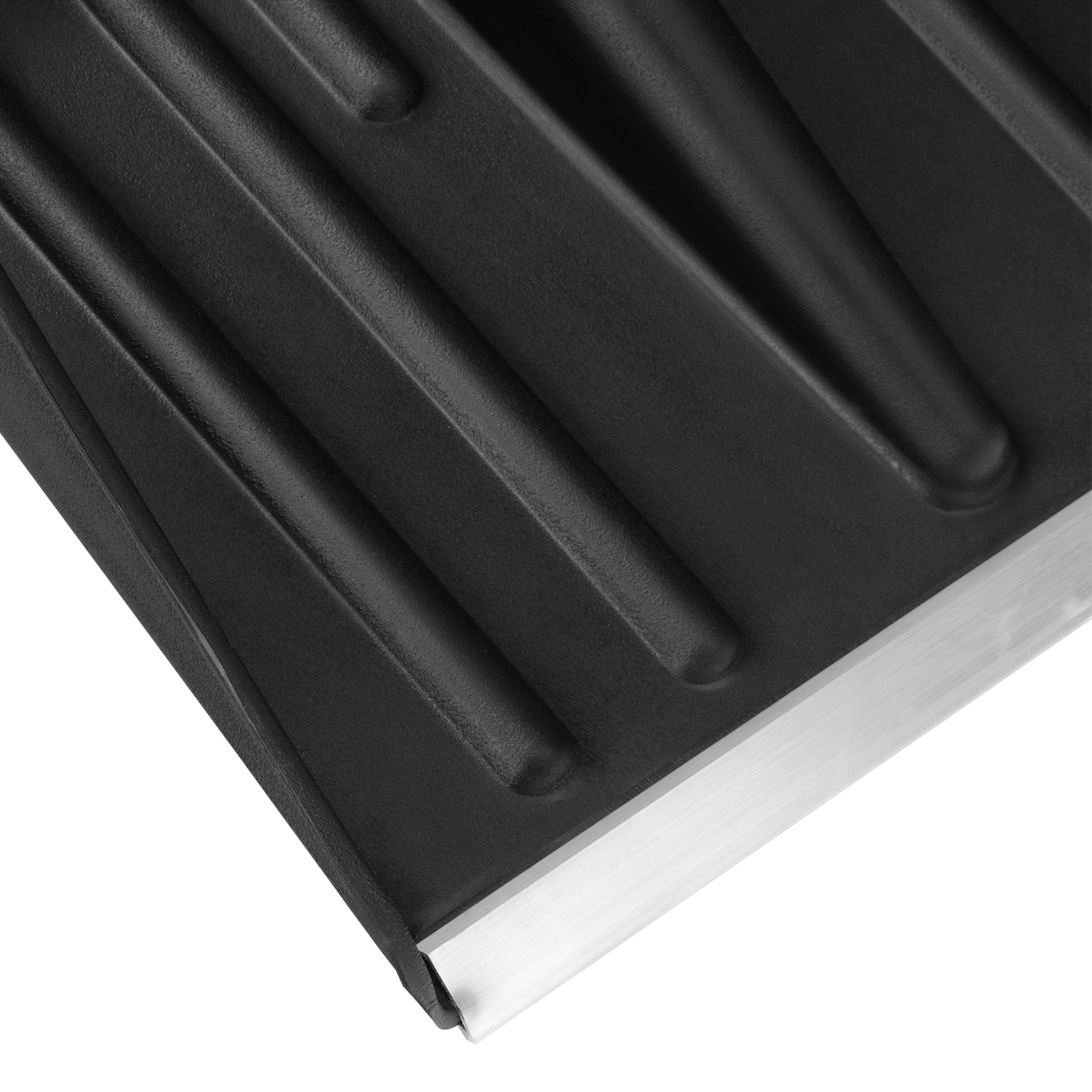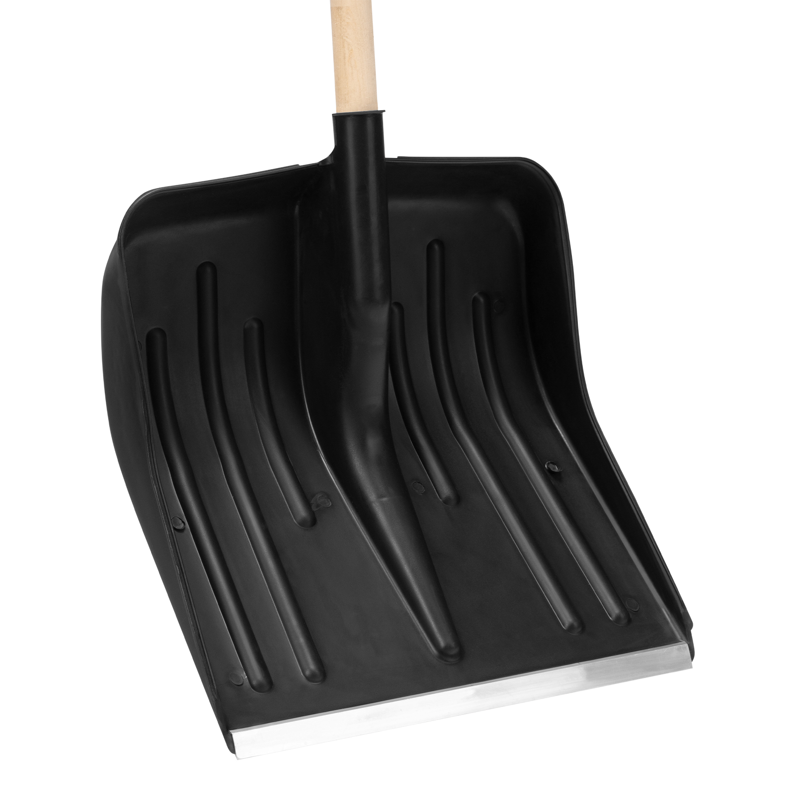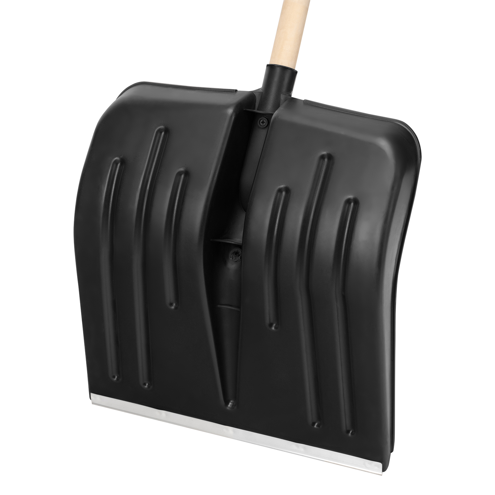 - Эффективная работа — углубленный ковш с бортиками вмещает много снега, защитная накладка из алюминиевого сплава предотвращает износ кромки и облегчает очистку слежавшегося снега и наста.