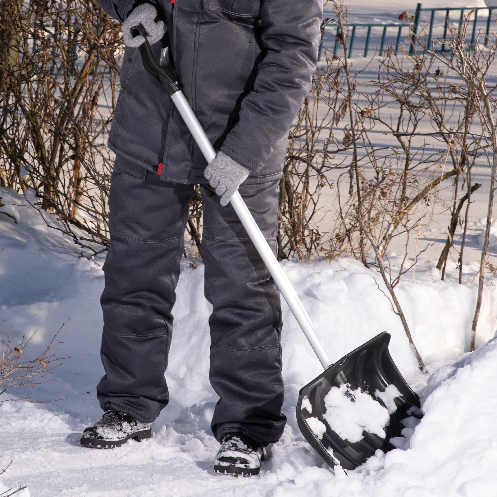 Пластиковая лопата Сибртех 61662 размером 470 x 350 x 1340 мм, с алюминиевым черенком, позволяет облегчить уборку снега. С ее помощью можно очистить дорожки в загородном доме, выезд из гаража и т.д. С лопатой весом 0,9 кг можно можно долго работать без усталости. А за счет длины 1340 мм с ней комфортно работать, т.к. снижается нагрузка на спину.