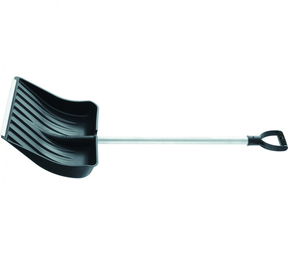 - Эффективная работа — углубленный ковш с бортиками вмещает много снега, а защитная накладка из алюминиевого сплава предотвращает износ кромки и облегчает очистку слежавшегося снега и наста.