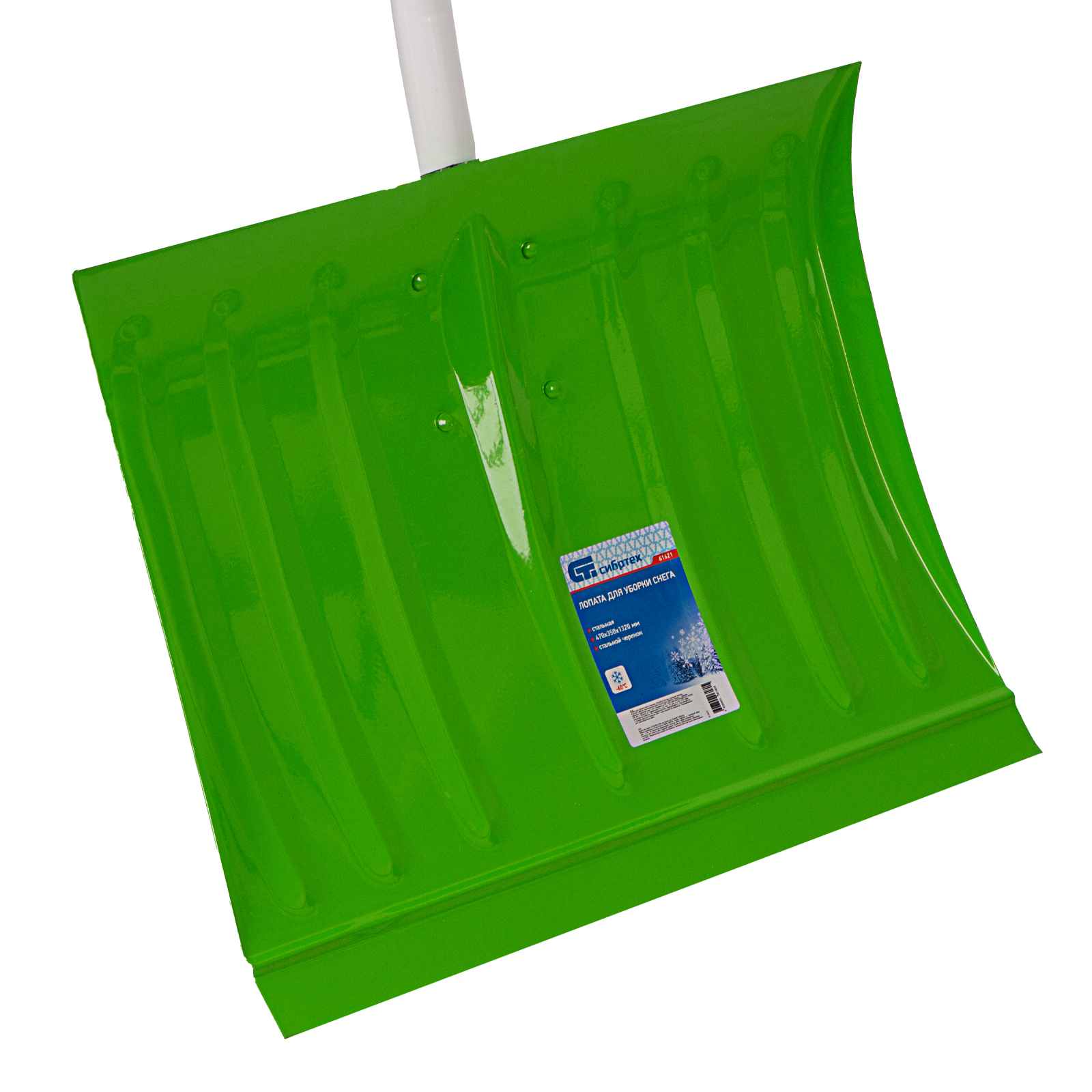 Лопата Сибртех 61621 размером 470 х 350 х 1320 мм, со стальным черенком, используется для уборки снега. Также применяется для погрузки легких сыпучих материалов. Лопатой можно быстро расчистить дорожки на даче или подъезд к гаражу. На кромке полотна имеется стальная пластина, позволяющая эффективно счищать слежавшийся снег с твердых поверхностей.