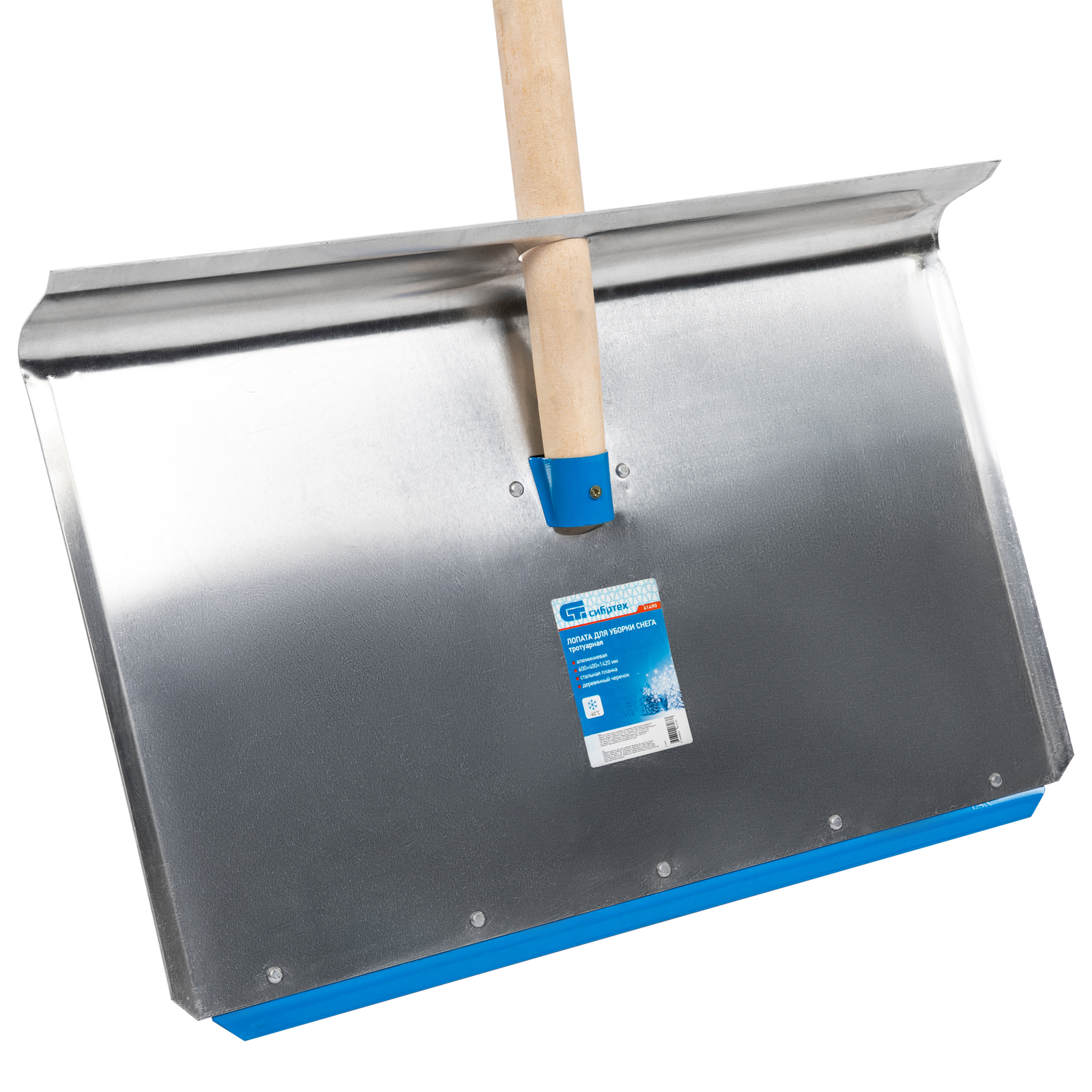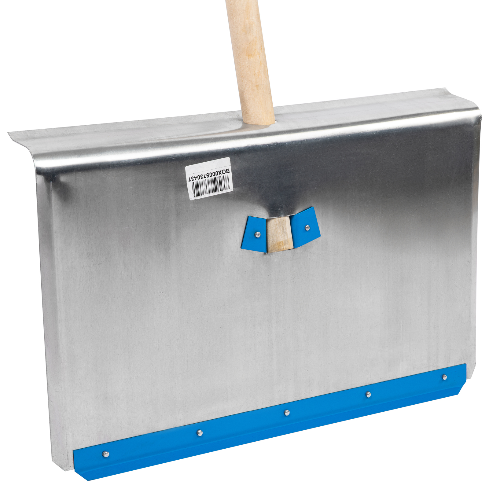Алюминиевая тротуарная лопата Сибртех 61490 размером 600 х 400 х 1420 мм, с деревянным черенком, подходит для расчистки тротуаров и уборки снега. Увеличенная толщина полотна 1,5 мм и стальная накладка придают ковшу устойчивость к интенсивным нагрузкам, поэтому лопата эффективно справляется с настом и крупными комьями снега.