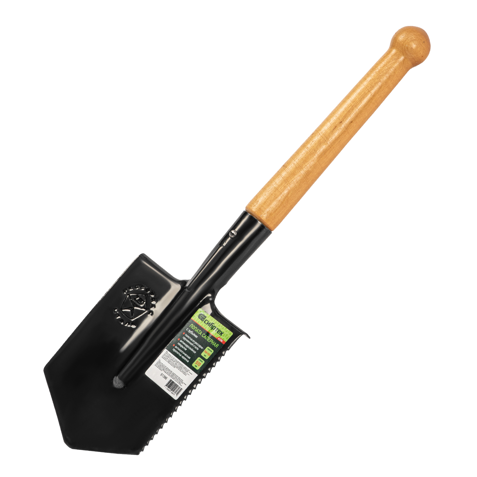 Стальная саперная лопата Сибртех 61396 размером 150 х 180 х 510 мм, с деревянным черенком и зубьями на боковой стороне полотна, предназначена для выполнения земляных работ небольшого объема. Полотно пятиугольной формы легко входит в землю, а благодаря зубьям лопата успешно справляется даже с тяжелым, плотным грунтом. Инструмент будет полезен для садово-огородных работ, пригодится в походе или автомобильной поездке.