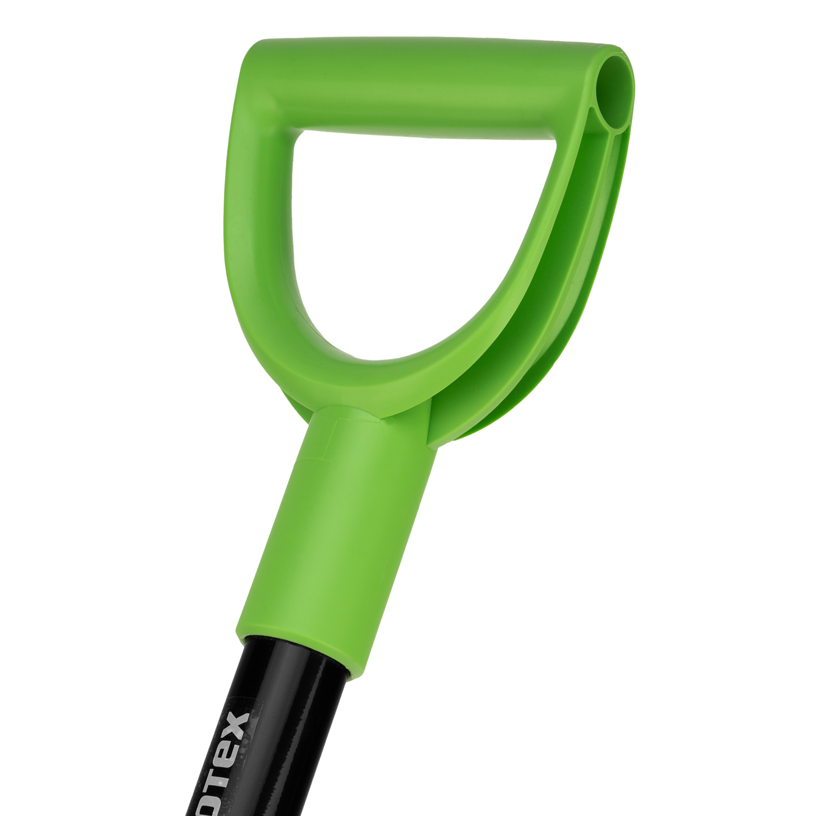 - Пластиковая рукоятка повышает удобство работы, особенно при погрузке материалов.