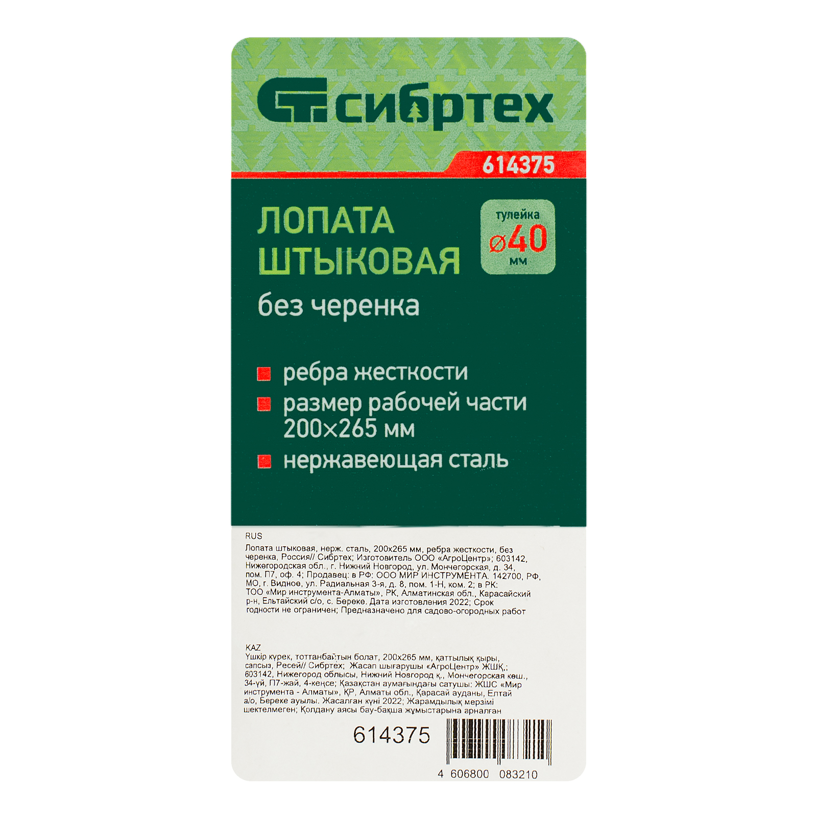 Штыковая лопата Сибртех 614375 с полотном размером 200 х 265 мм, с ребрами жесткости, без черенка, изготовлена из нержавеющей стали. Предназначена для рыхления грунта и выкапывания ям, может использоваться при проведении земляных работ на на строительной площадке или дачном участке. Полотно имеет заостренную форму, что облегчает работу.