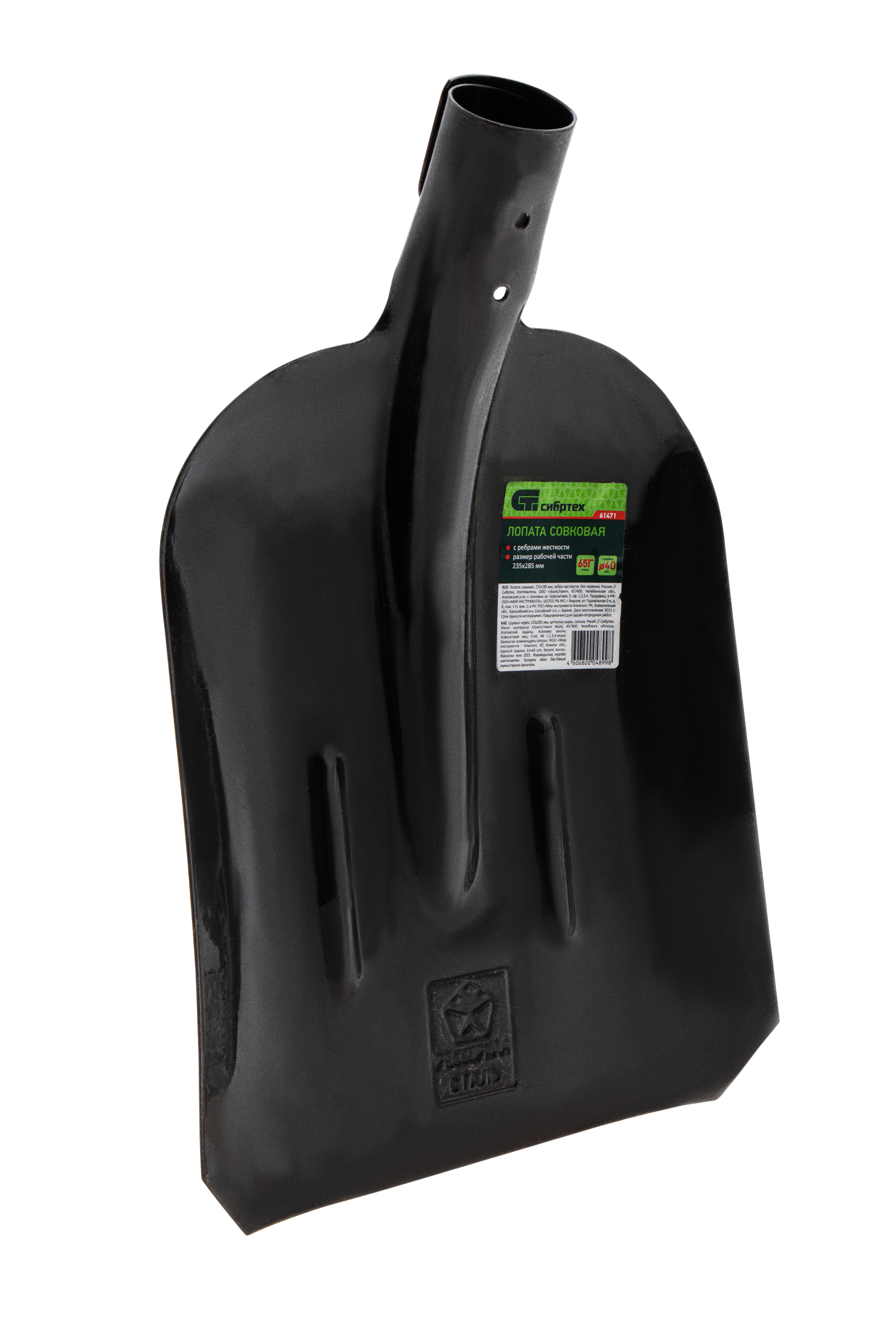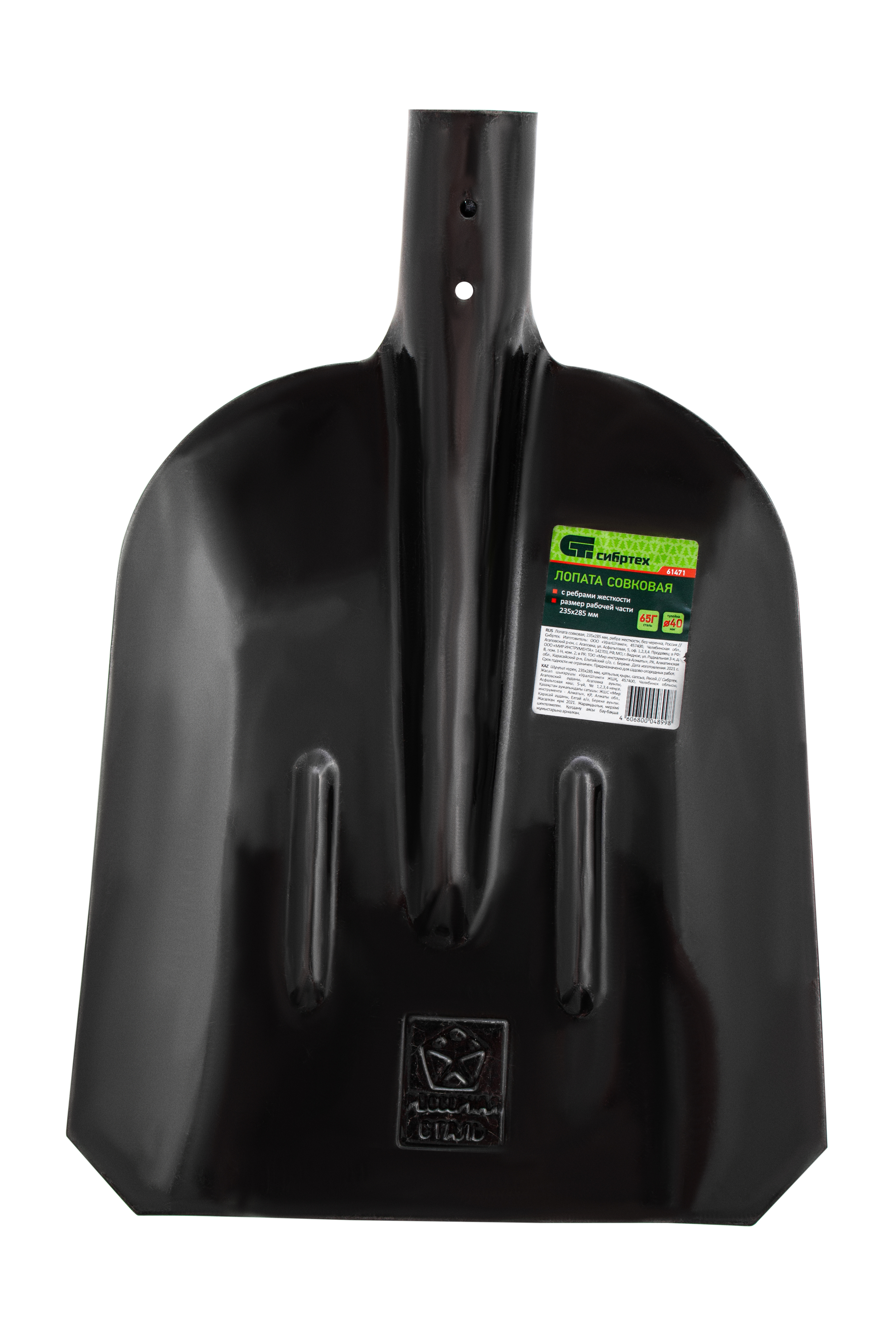 <p>Совковая лопата Сибртех 61471 размером 235 х 285 мм, с ребрами жесткости, без черенка, используется для работы с грунтом, сыпучими материалами и строительными растворами. С поставленными задачами лопата успешно справляется благодаря широкой рабочей части, загнутым бортам, а также цельновырубной тулейке, повышающей прочностные характеристики. Лопата устанавливается на черенок диаметром 40 мм, рекомендуемые артикулы — 68441, 68400, 68451, 68422.</p><h2>Преимущества</h2><ul><li>Прочность и упругость — полотно изготовлено из рессорно-пружинной стали толщиной 1,5 мм и закалено.</li><li>Защита от разрушения — лаковое покрытие предохраняет инструмент от коррозии, механических повреждений и химических воздействий.</li><li>Деформационная стойкость — полотно усилено ребрами жесткости.</li></ul>