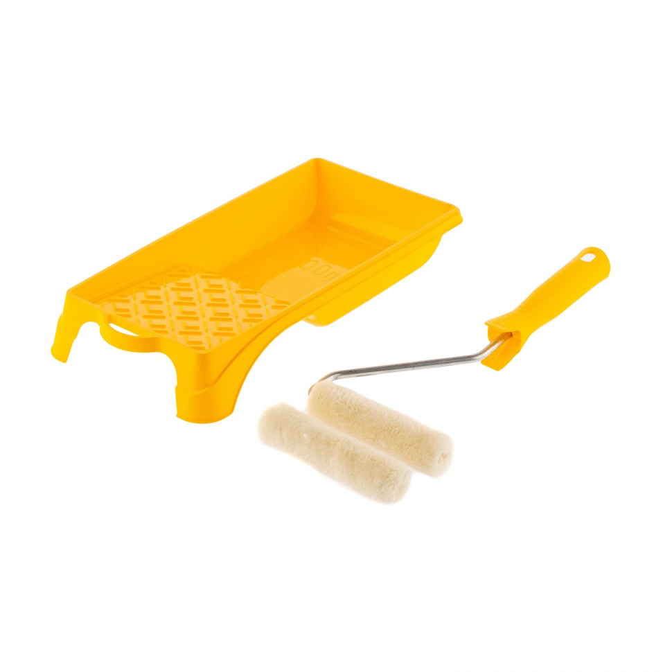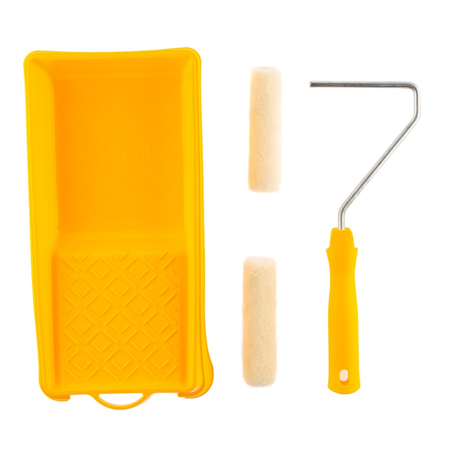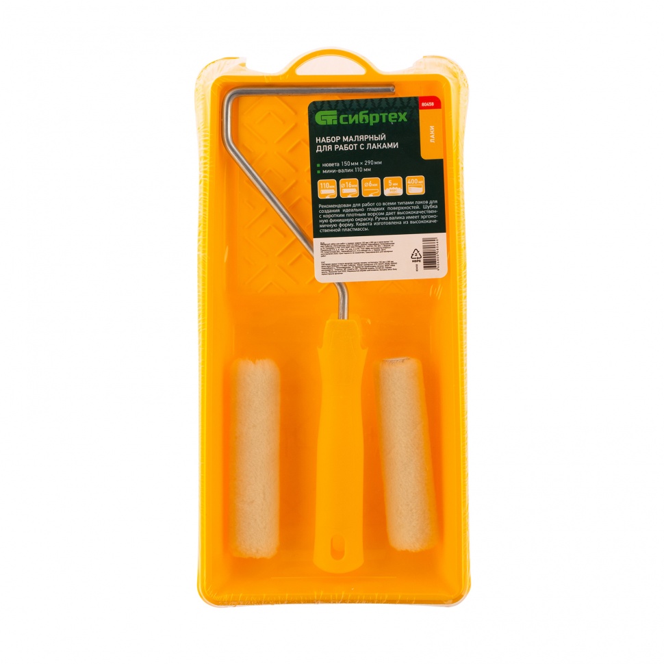 Малярный набор для работ с лаками Сибртех 80458 состоит из двух сменных мини-валиков шириной 110 мм, кюветы размером 150 мм х 290 мм и бюгеля. Валики позволяют наносить лак идеально ровным и тонким слоем, создавая гладкое финишное покрытие. Шубки с коротким плотным ворсом обеспечивают высокое качество окрашивания без ворсинок на поверхности.