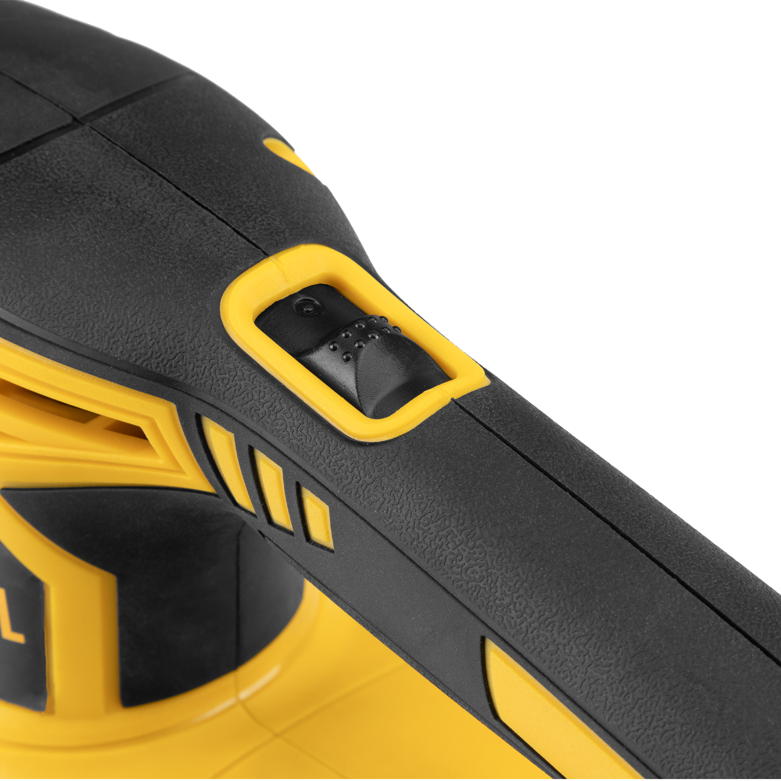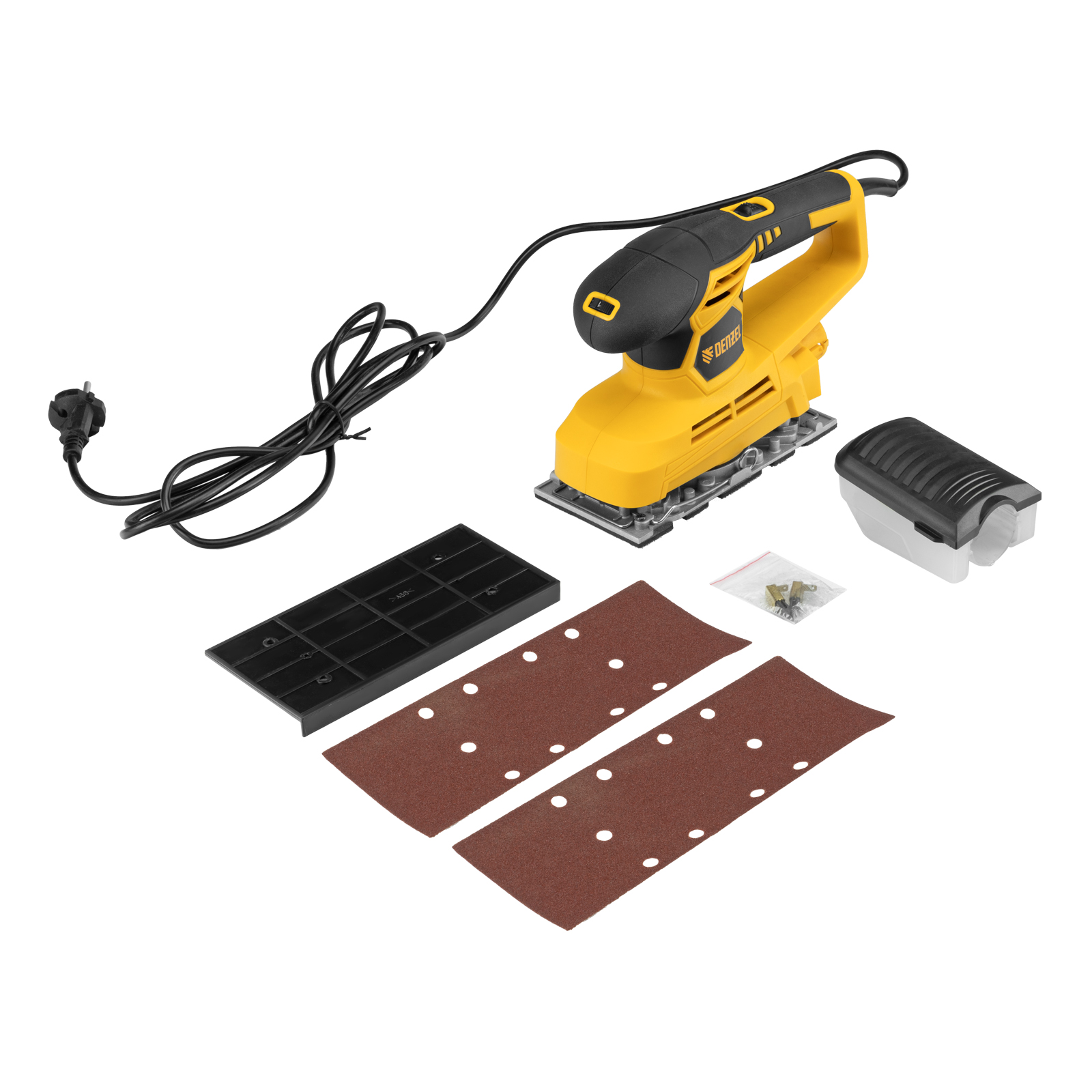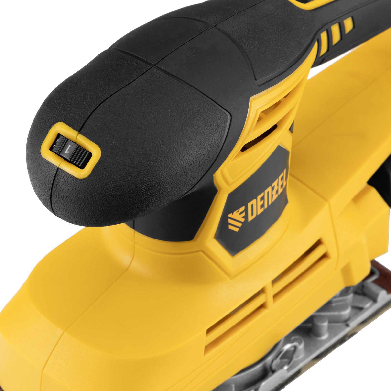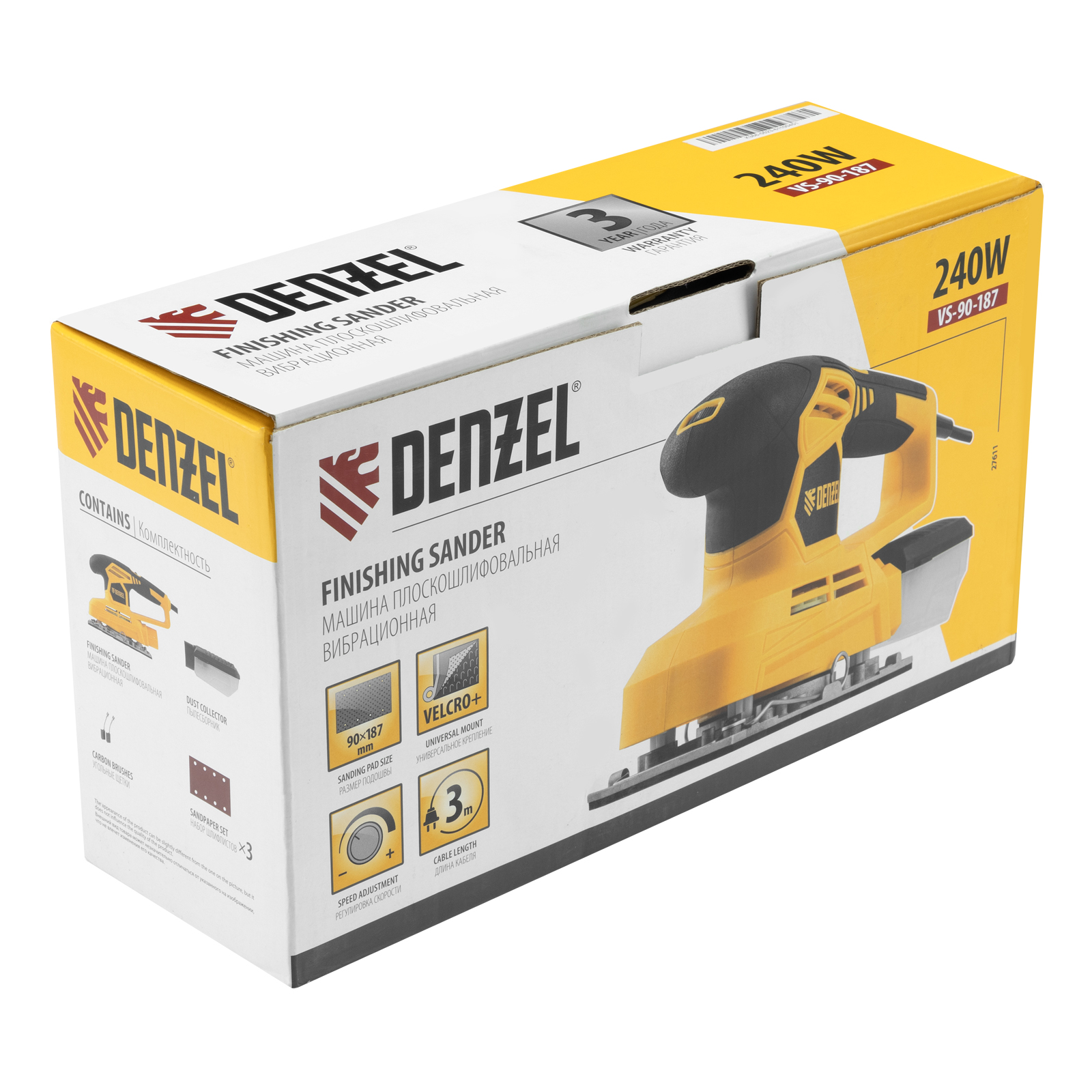 Вибрационная плоскошлифовальная машина Denzel VS-90-187 мощностью 240 Вт, с частотой колебаний подошвы 6000-11000 об/мин, подходит для сухого шлифования, зачистки и полировки поверхностей. Регулировка частоты колебаний подошвы 6000-11000 об/мин позволяет выбрать оптимальный режим работы. Размер рабочей поверхности составляет 90 х 187 мм, ход платформы — 1,6 мм, благодаря чему машина эффективно справляется с обработкой больших поверхностей.