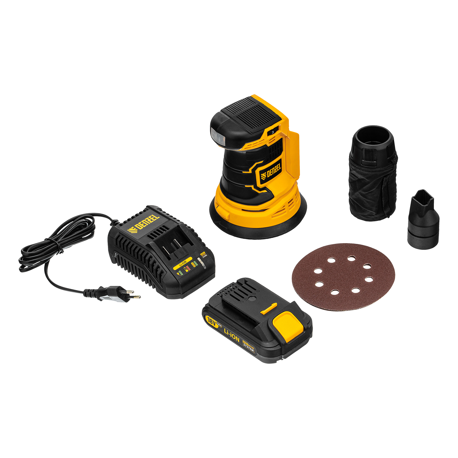 Аккумуляторная эксцентриковая шлифовальная машина Denzel COS-125 28470 работает от источника питания Li-Ion емкостью 2 А/ч, с рабочим напряжением 18 В. Предназначена для выполнения зачистных, шлифовальных и полировальных работ по древесине, металлу, пластику и камню. Применяется со шлифовальными и полировальными кругами диаметром 125 мм, скорость вращения составляет 2000-10000 об/мин, благодаря чему можно эффективно решать различные задачи.,Универсальный аккумулятор с интеллектуальной системой распознавания нагрузки совместим со всеми инструментами единой платформы Denzel battery system 18V серии IB.