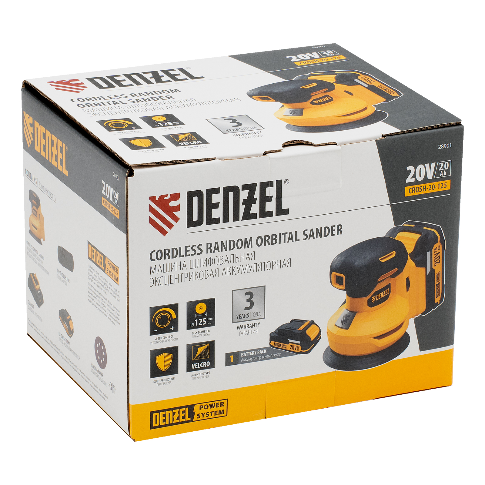 - Универсальность — аккумулятор Li-Ion емкостью 2 А·ч совместим со всеми инструментами единой платформы Denzel Power System 20V.