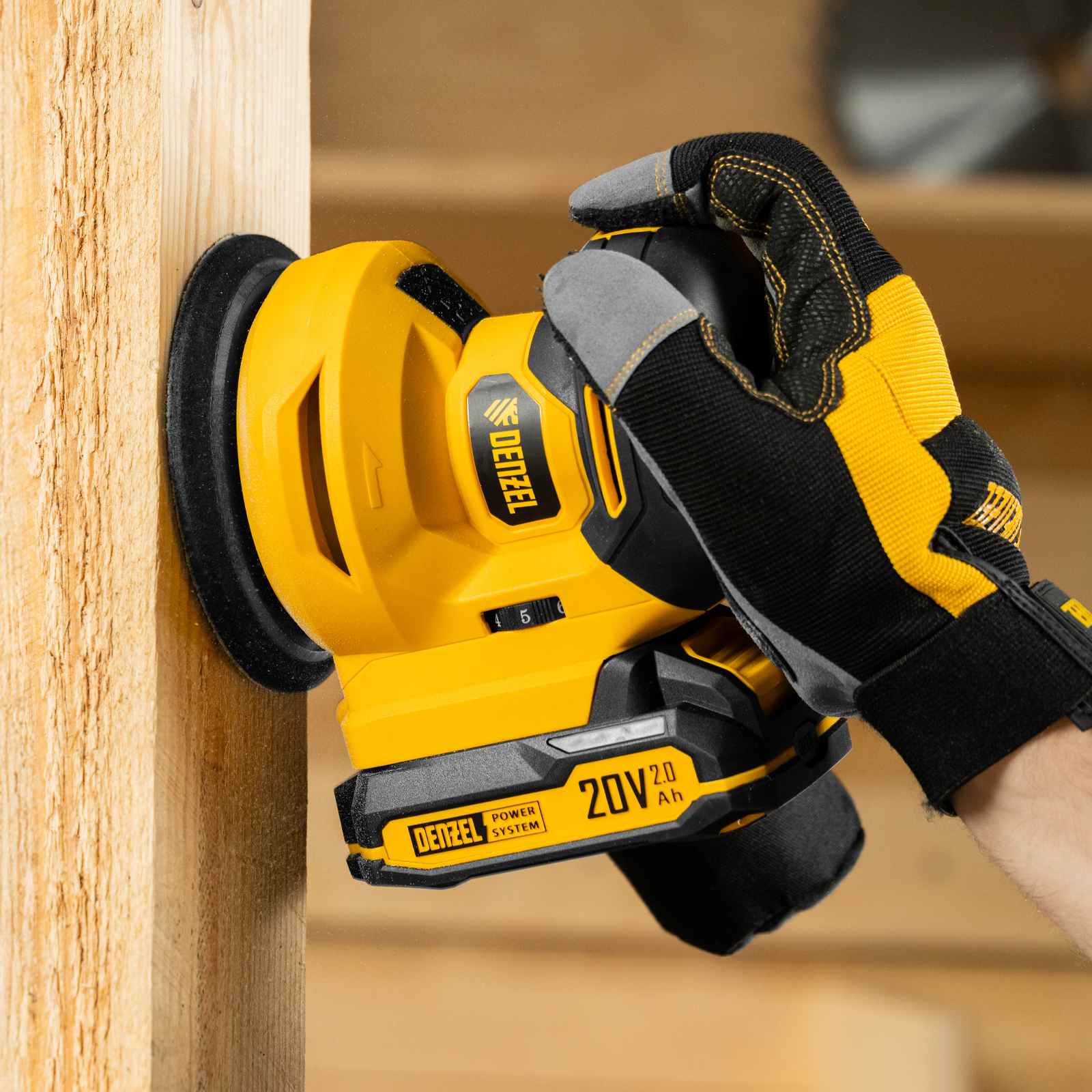 Аккумуляторная шлифовальная эксцентриковая машина Denzel CROSH-20-125 28901 работает от батареи Li-Ion 20 В и используется для сухого шлифования металлических, деревянных и пластиковых поверхностей. В зависимости от используемой оснастки позволяет как снимать толстый слой материала, так и проводить финишное шлифование. Машина совместима со шлифкругами диаметром 125 мм. В процессе работы подошва совершает вращательные и колебательные движения. Регулируя степень прижимания подошвы к поверхности, можно менять соотношение вращения и вибрации для максимально эффективной обработки. Машина оптимальна для применения в быту.
