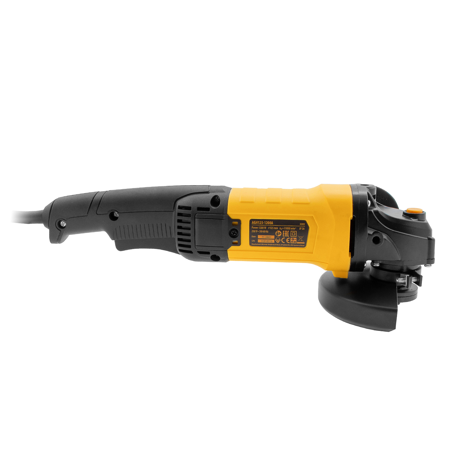 Угловая шлифовальная машина Denzel AGH125-1200А 26909 мощностью 1200 Вт — универсальный инструмент, предназначенный для работы с дисками диаметром до 125 мм с максимальной скоростью 11000 об/мин. Применяется для отрезных, зачистных, шлифовальных работ по древесине, металлу, камню, бетону, пластику и другим материалам. Оптимально подходит для бытового использования.