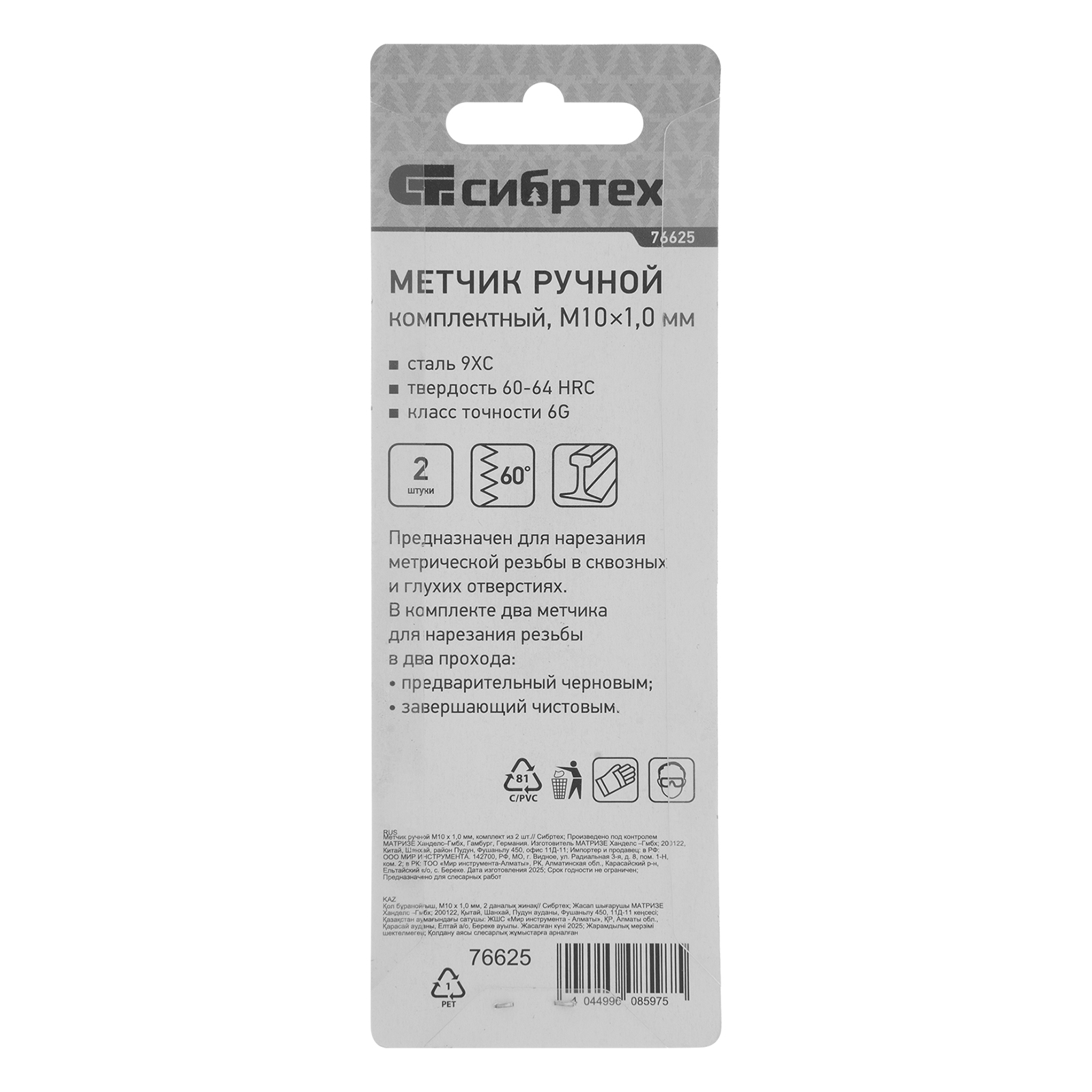 - Высокая точность резьбы — в наборе 2 метчика: черновой для первого прохода и чистовой для финишной доводки.