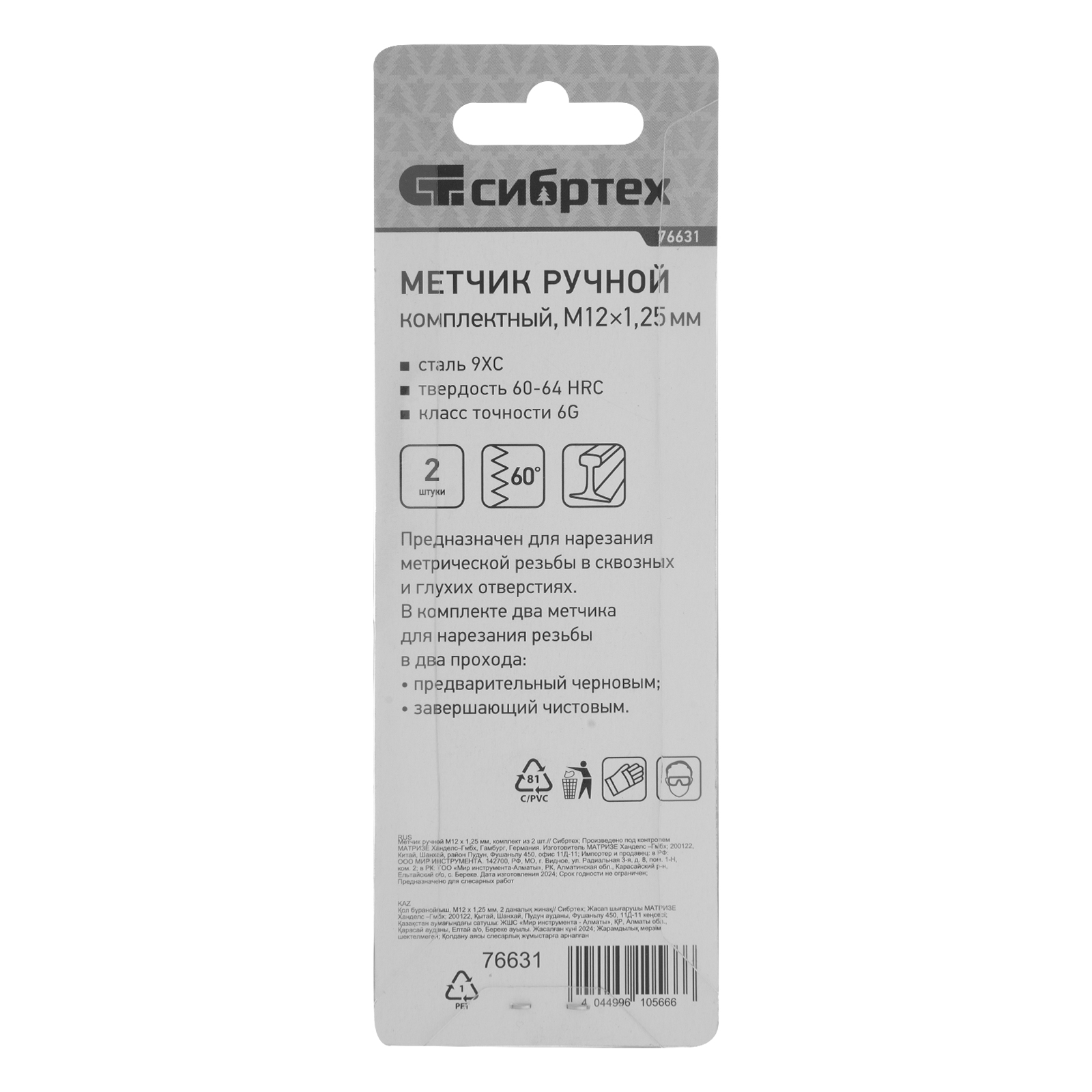 - Высокая точность резьбы — в наборе 2 метчика: черновой для первого прохода и чистовой для финишной доводки.