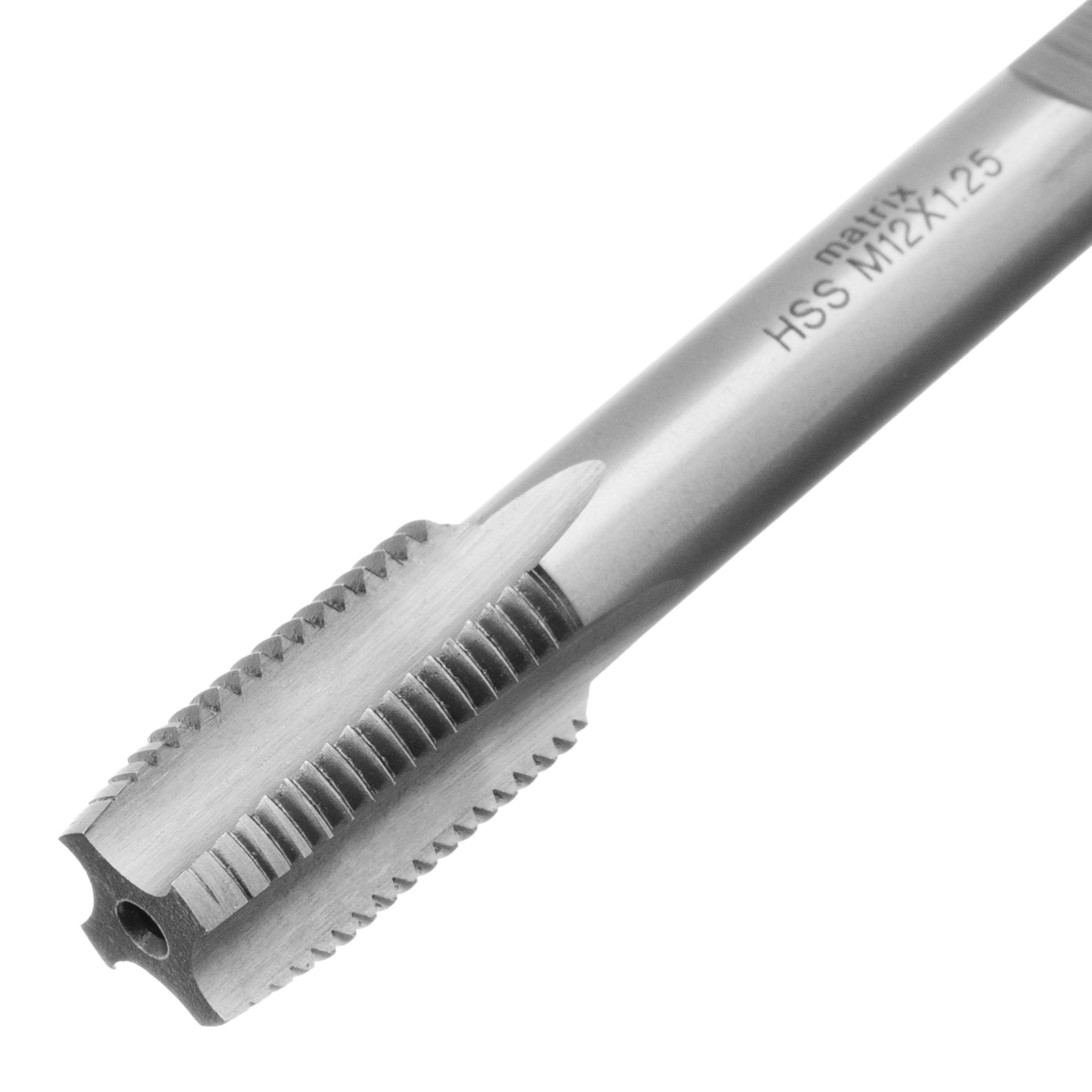 Ручной метчик Matrix 76694, HSS, — резьбонарезной инструмент, который используется для создания резьбы диаметром М12 и шагом 1,25 мм. Оптимален для работы с деталями из твердой стали прочностью до 900 Н/мм². Нарезает резьбу за один проход. Метчик устанавливается на метчикодержатель с патроном под хвостовик 7 мм. Будет полезен в слесарной мастерской, а также дома или в гараже.