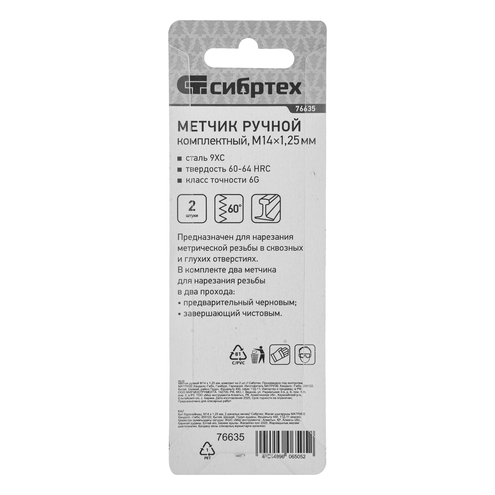 - Высокая точность резьбы — в наборе 2 метчика: черновой для первого прохода и чистовой для финишной доводки.