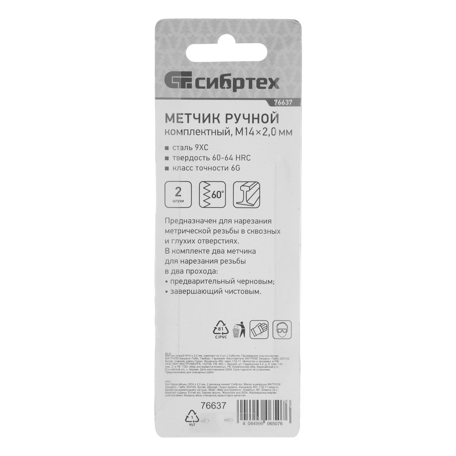 - Высокая точность резьбы — в наборе 2 метчика: черновой для первого прохода и чистовой для финишной доводки.