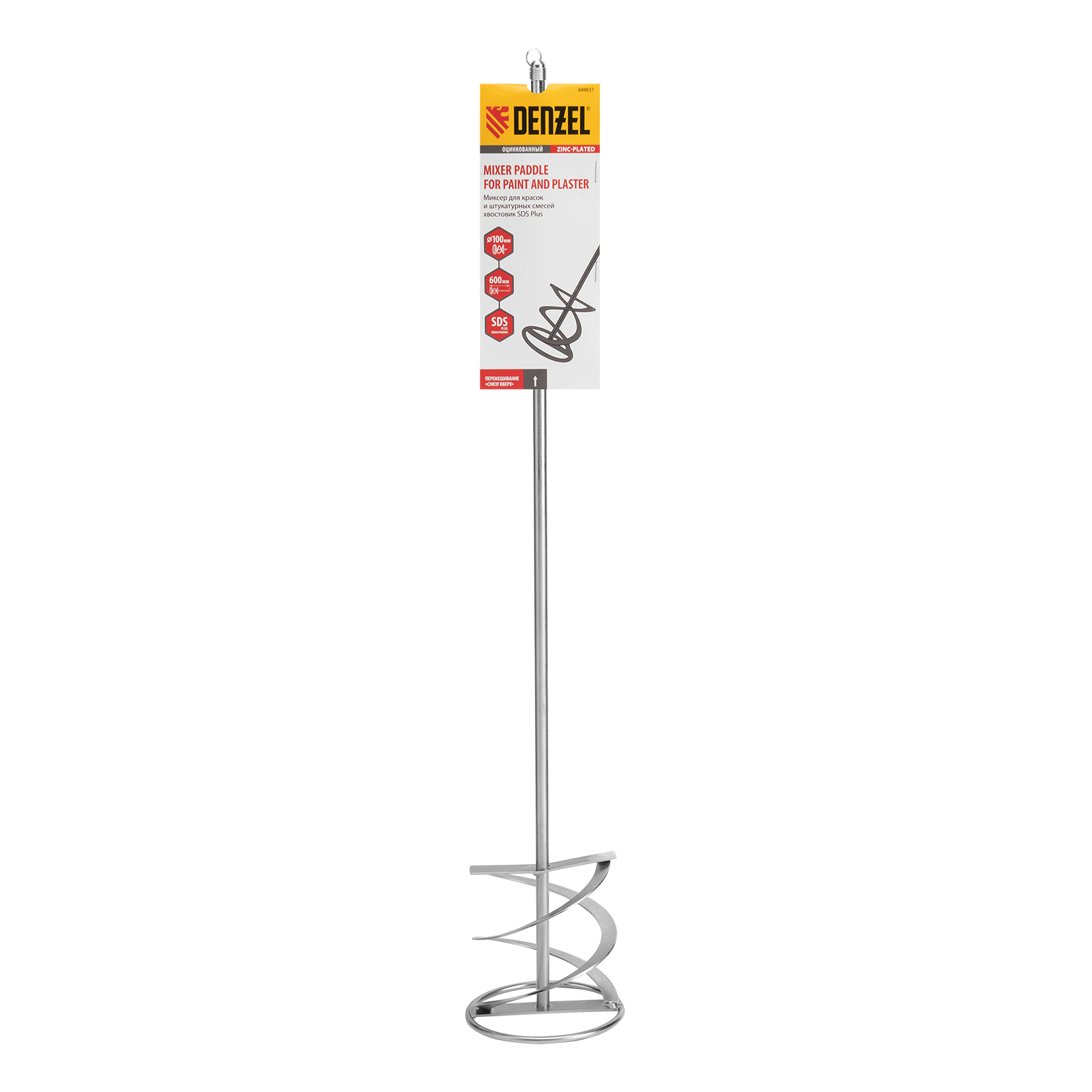 Оцинкованный миксер для красок и штукатурных смесей Denzel 848837 размером 100 х 600 мм, с хвостовиком SDS Plus, используется для замешивания строительных растворов. Спиралевидная рабочая часть перемешивает состав снизу вверх, поэтому все компоненты распределяются в нем равномерно. Защитное кольцо предотвращает повреждение емкости для размешивания состава. Штукатурный миксер устанавливается в патрон перфоратора SDS Plus и применяется во время строительных и отделочных работ.