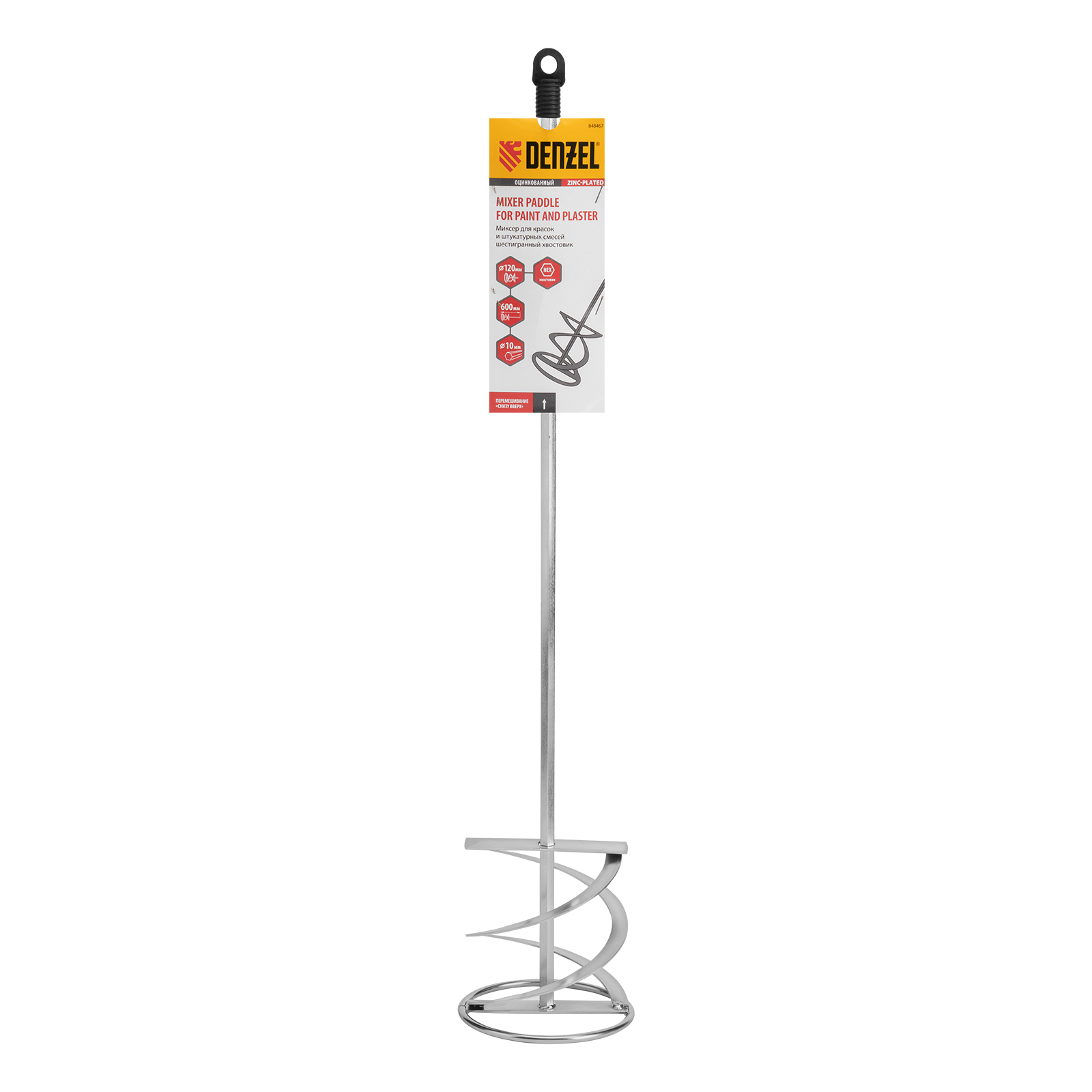 Оцинкованный миксер для красок и штукатурных смесей Denzel 848467 длиной 600 мм, с шестигранным хвостовиком 10 мм, имеет венчик диаметром 120 мм и используется для приготовления строительных растворов. Насадка перемешивает состав снизу вверх, что позволяет добиться полной однородности готовой смеси. Защитное кольцо предотвращает повреждение емкости, в которой готовится раствор. Миксер пригодится во время строительства и ремонта.
