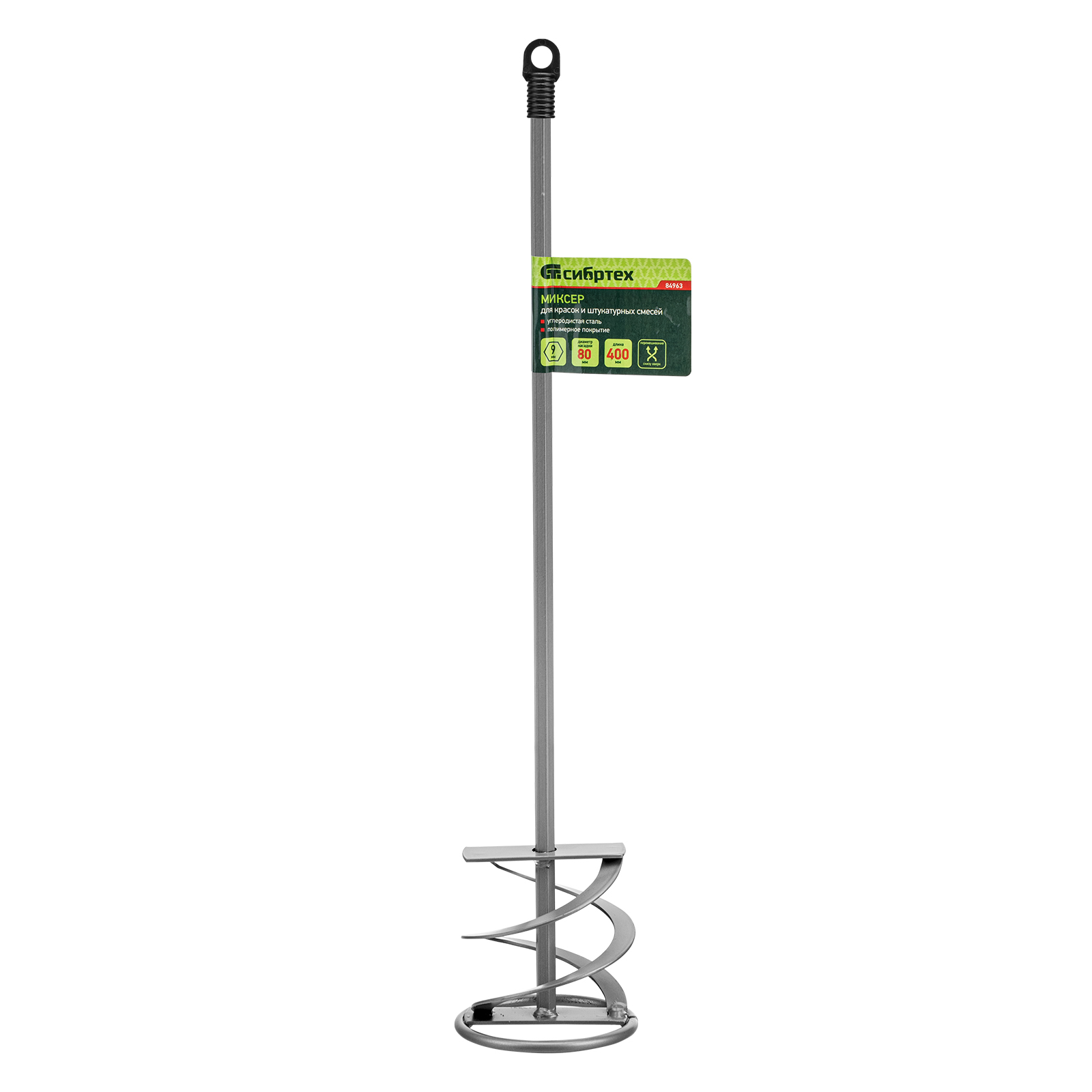 Миксер для красок и штукатурных смесей Сибртех 84963 диаметром 80 мм, длиной 400 мм, с шестигранным хвостовиком 9 мм, — оснастка электроинструмента, которая используется при проведении строительных и отделочных работ. Предназначен для размешивания любых типов лакокрасочных материалов, жидких шпатлевок и штукатурки. Совместим с миксерами и мощными дрелями.