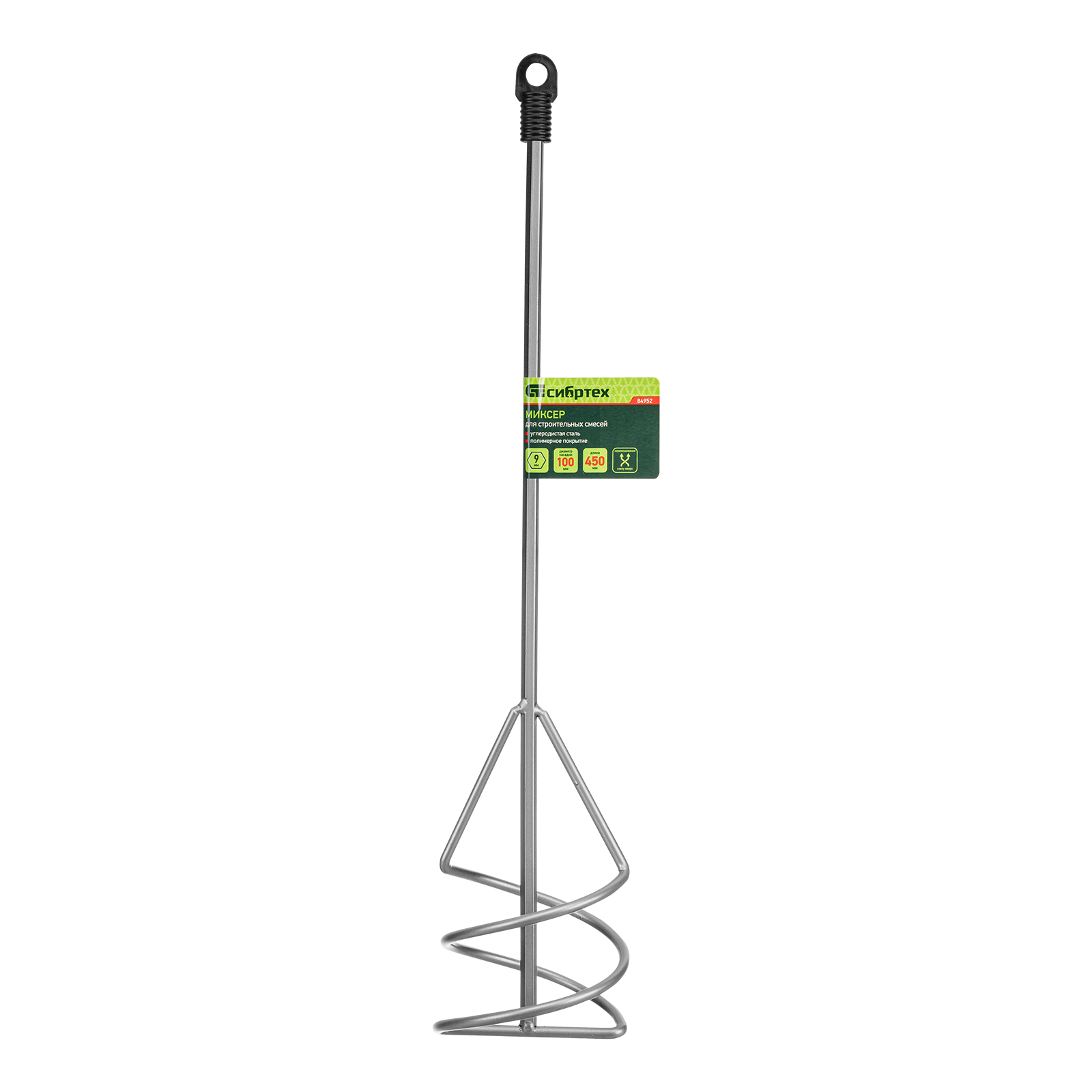 Миксер Сибртех 84955 длиной 400 мм, с рабочей частью диаметром 80 мм, устанавливается на перфоратор с патроном под хвостовик SDS Plus и используется для приготовления песчано-гравийных смесей, а также штукатурок, шпатлевок и других строительных растворов. Спиралевидная рабочая часть перемешивает состав снизу вверх, позволяя получить однородную массу. Насадка используется в быту во время ремонта и на строительной площадке.