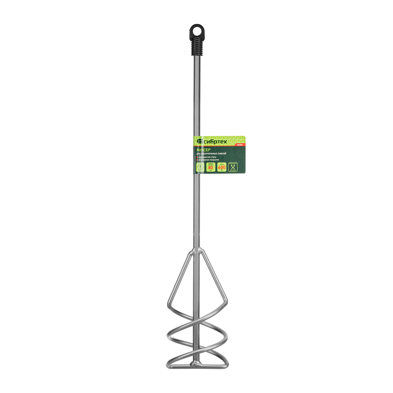Миксер Сибртех 84952 длиной 450 мм, с рабочей частью диаметром 100 мм и шестигранным хвостовиком 9 мм, устанавливается на электроинструмент и используется для приготовления песчано-гравийных смесей, а также штукатурок, шпатлевок и других строительных растворов. Спиралевидная рабочая часть перемешивает состав снизу вверх, позволяя получить однородную массу. Насадка используется в быту во время ремонта и на строительной площадке.