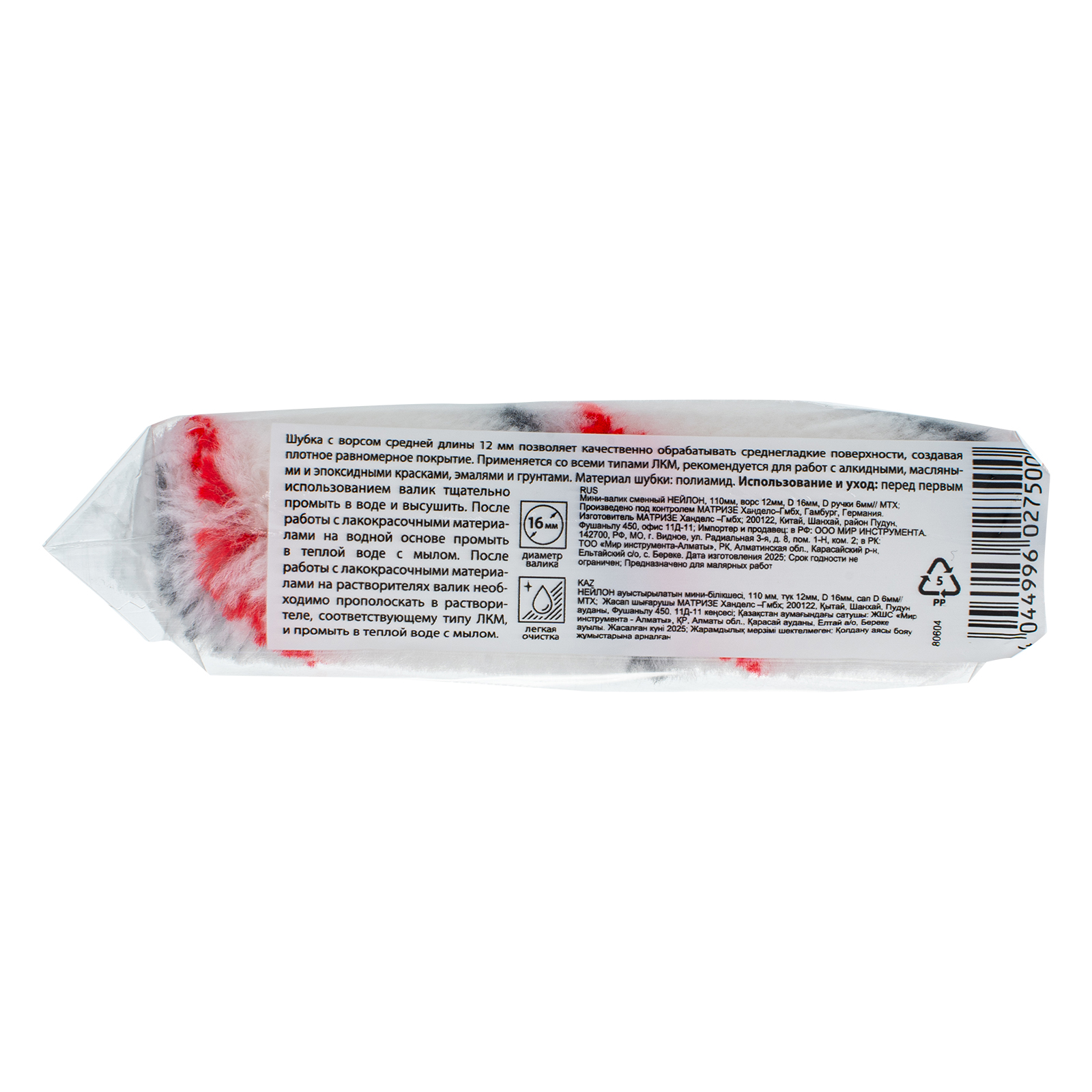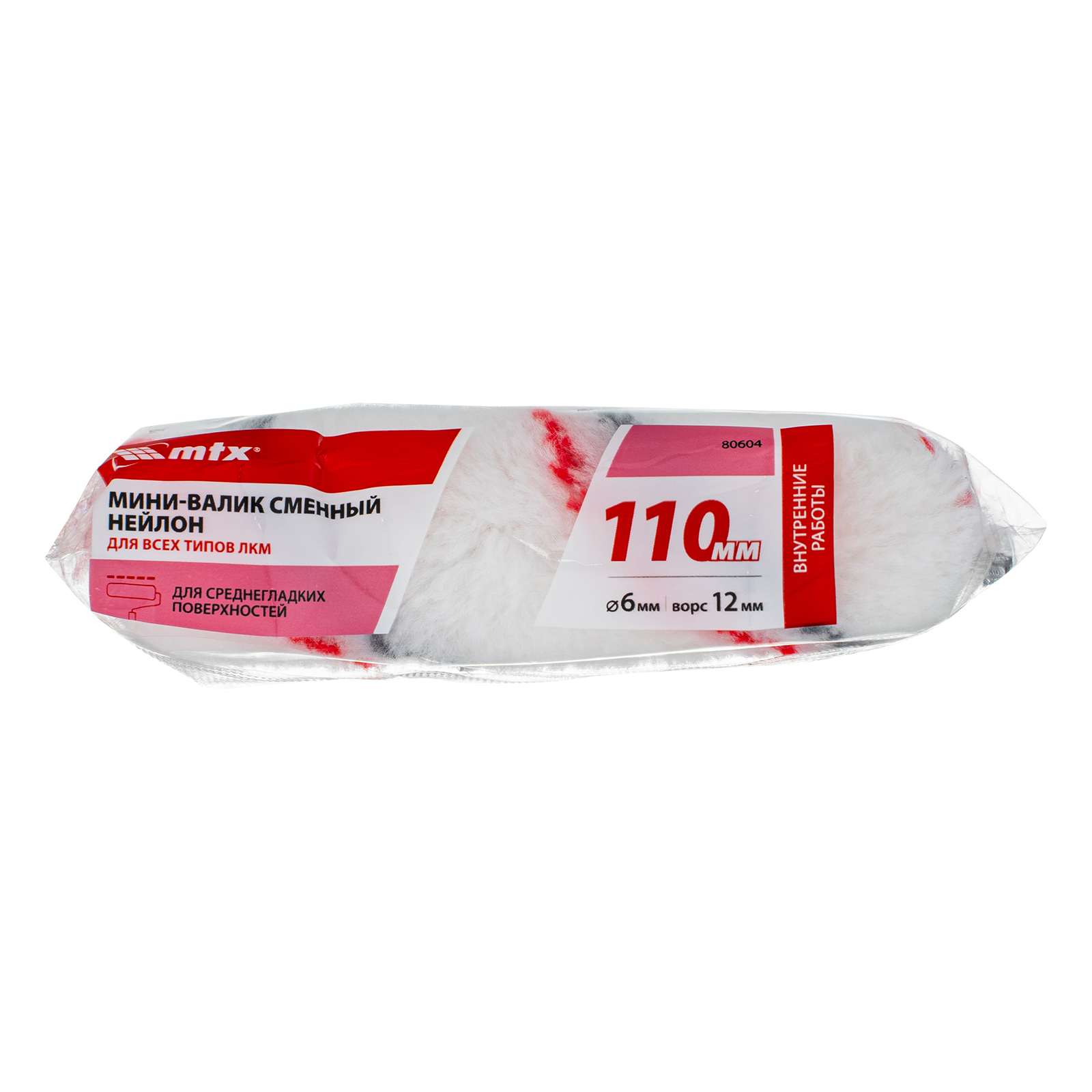 Сменный мини-валик MTX «Нейлон» 80604 из полиамида, с ворсом 12 мм, шириной 110 мм и диаметром ролика 16 мм подходит для бюгелей диаметром 6 мм. Предназначен для окрашивания небольших участков и труднодоступных мест. Валик может использоваться как с водно-дисперсионными, так и органорастворимыми красками.