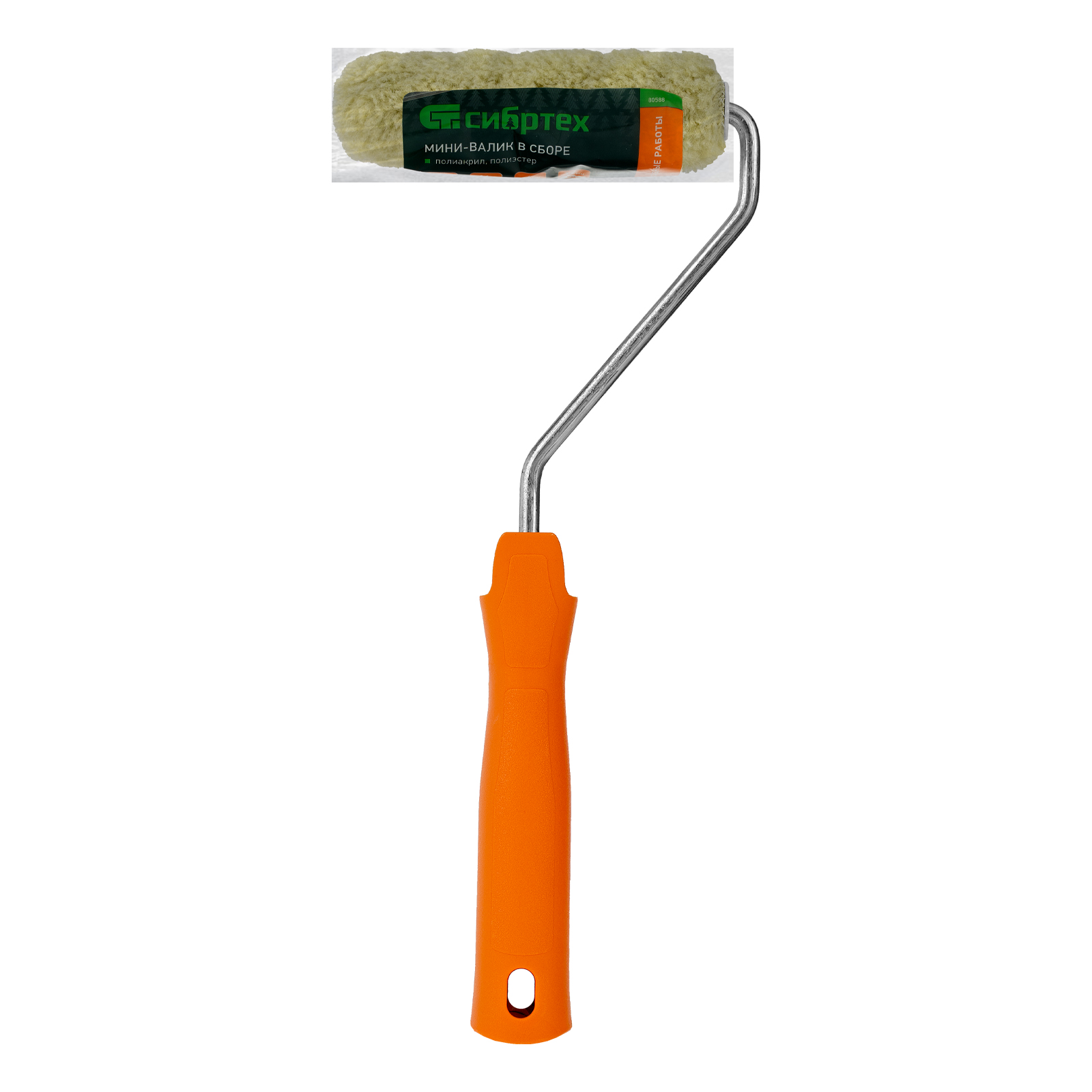 Мини-валик Сибртех «Фасадные работы» 80588 с ворсом 12 мм из полиакрила и полиэстера, роликом 110 х 16 мм, в сборе с ручкой 6 мм, рассчитан на наружные работы с фасадными красками. Валик эффективен для обработки поверхностей с грубой фактурой и неровностями. Полиакрил в составе шубки повышает ее формостойкость и устойчивость к разрывным нагрузкам.