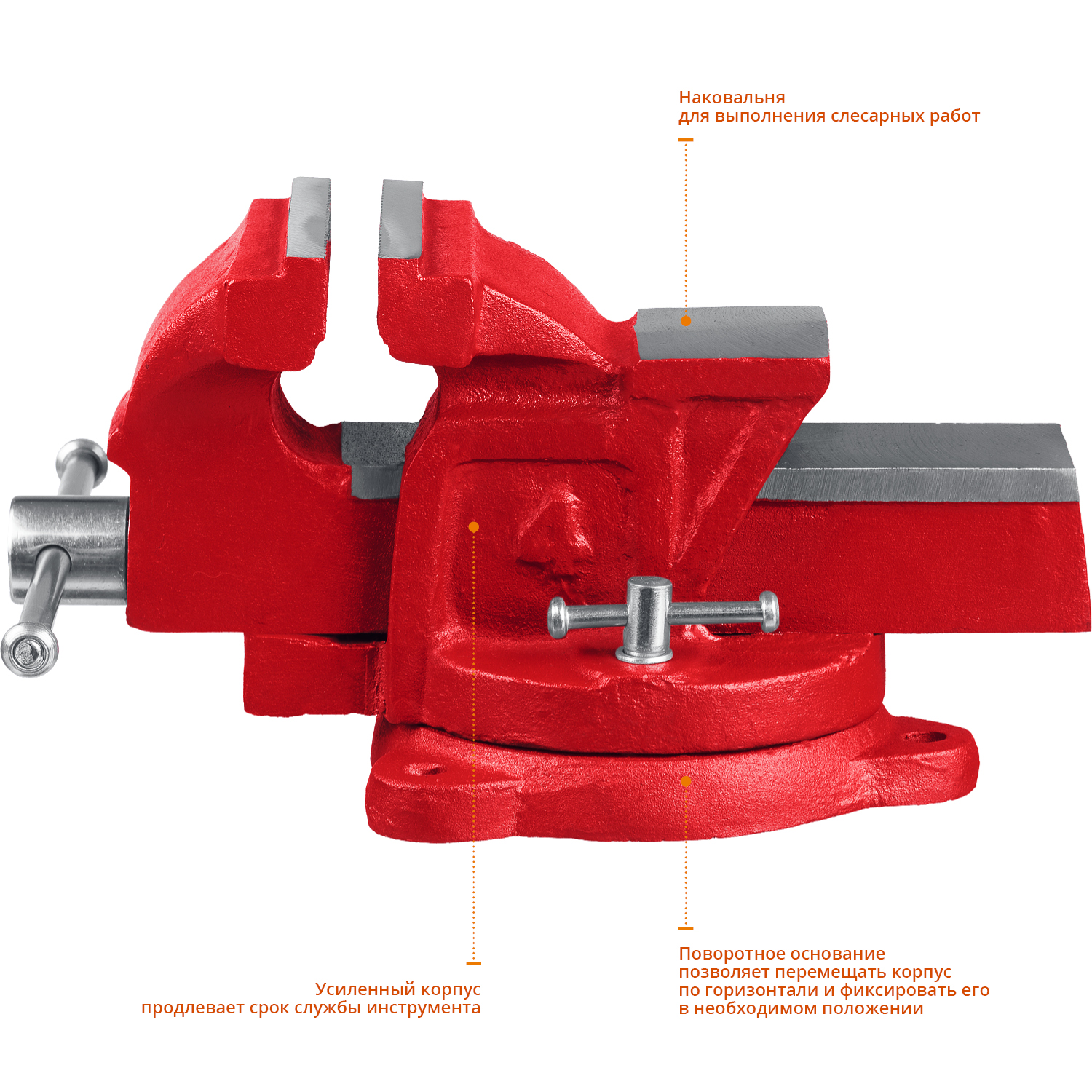 Надежный инструмент с поворотным механизмом, обеспечивающим удобство при выполнениии слесарных работ.