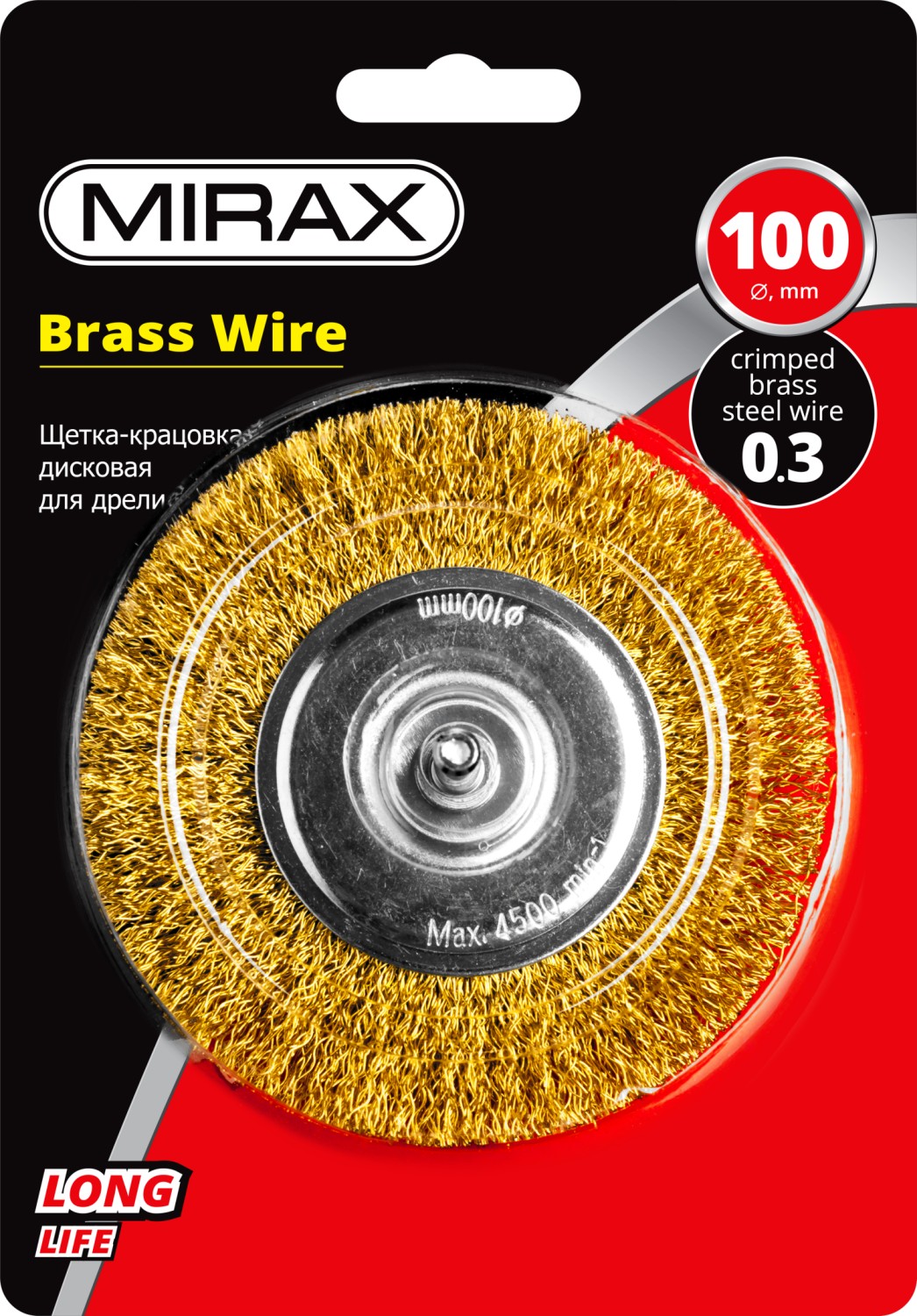 MIRAX 100 мм, витая стальная латунированная проволока 0.3 мм, щетка дисковая для дрели (35145-100)