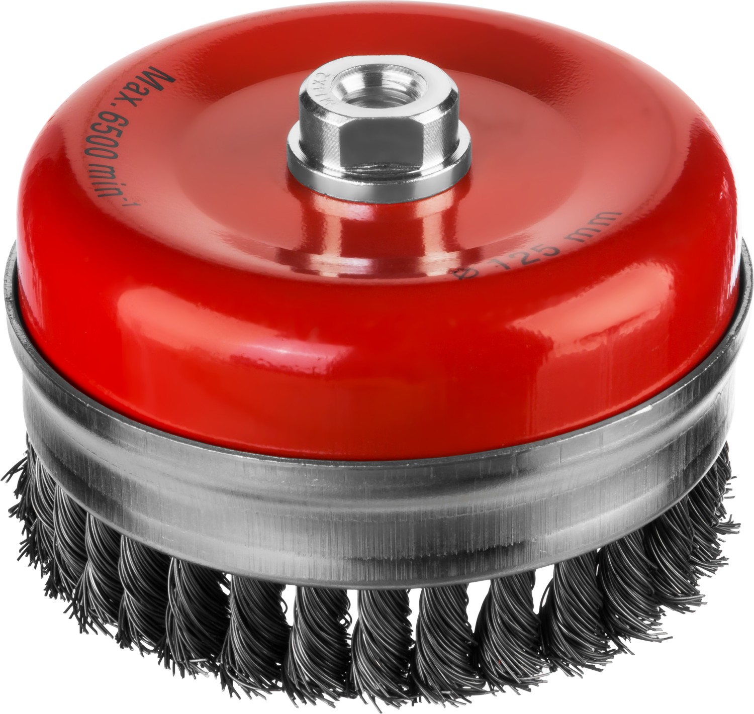 MIRAX 125 мм, жгутированная стальная проволока 0.5 мм,чашечная щетка-крацовка для УШМ (35144-125)