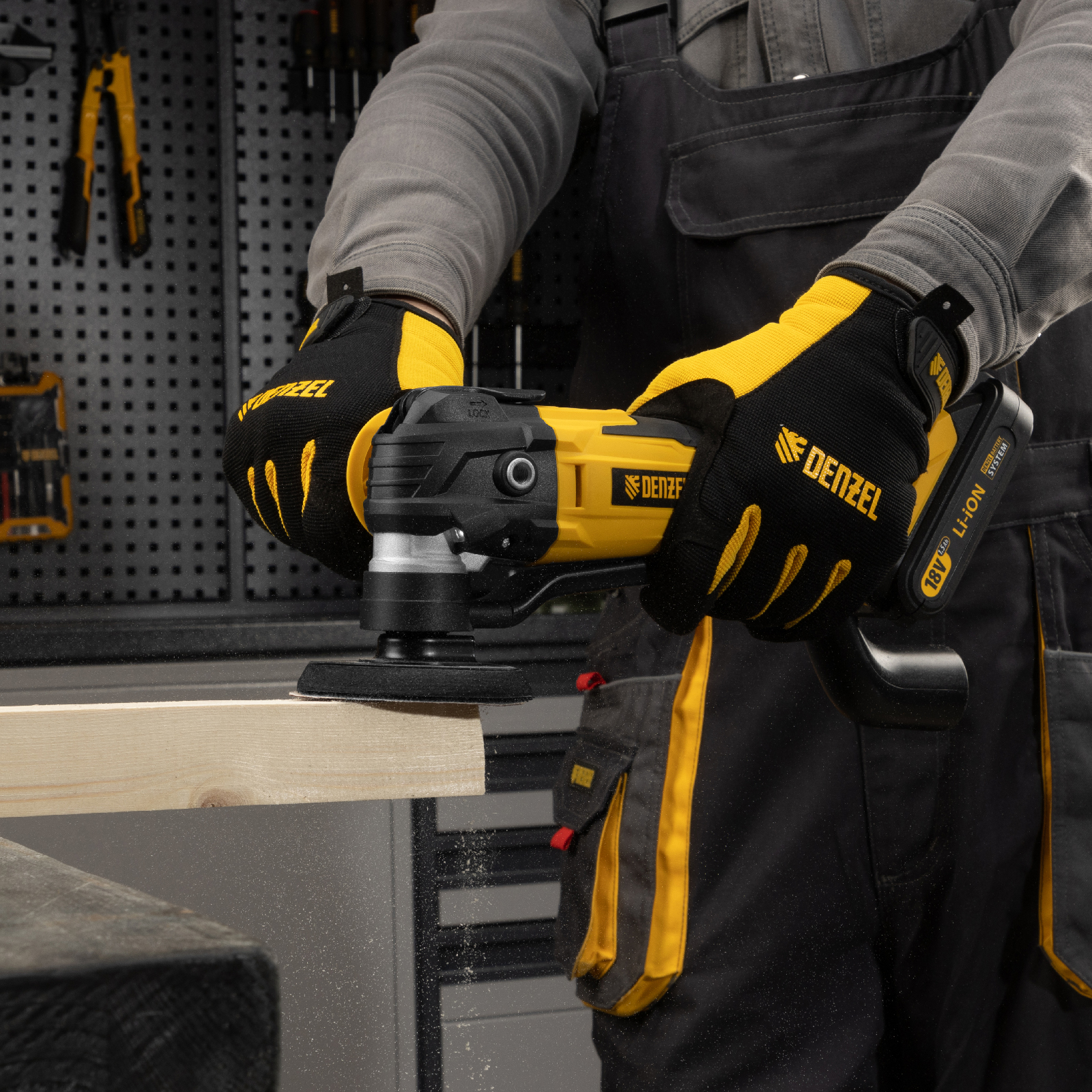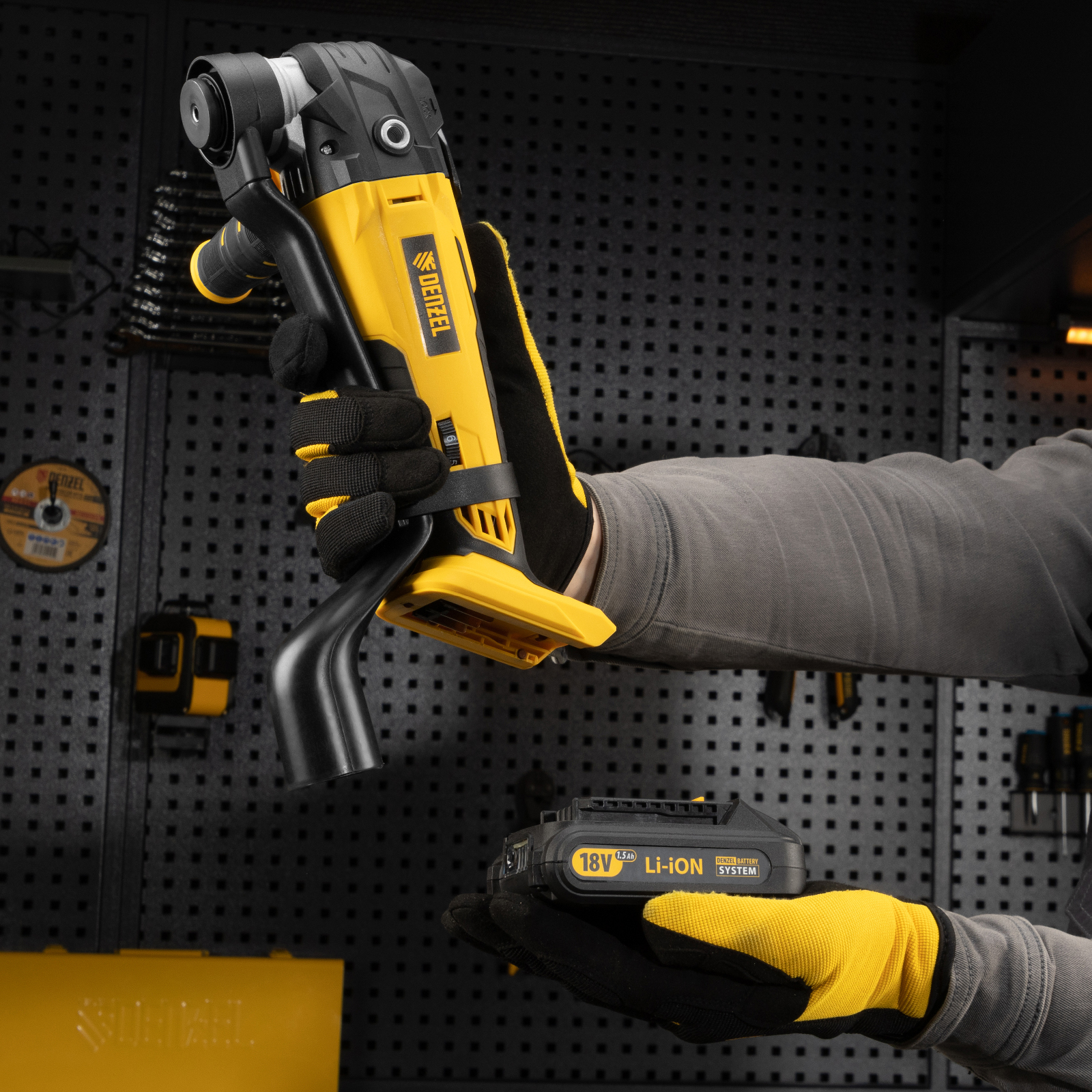 Многофункциональный аккумуляторный инструмент Denzel MTL-IB-18-0 28402 предназначен для выполнения широкого спектра задач. Позволяет осуществлять распил, подрезание, зачистку, обдирку практически любых материалов, например, древесины, металла, керамики. С высокой эффективностью работает даже в местах, недоступных для обычного лобзика и шлифовальной машины.,Инструмент работает от универсального аккумулятора Li-Ion напряжением 18 В и емкостью 2 Ач, который подходит ко всем инструментам Denzel на платформе 18 В. Аккумулятор Denzel имеет защиту от глубокого разряда и перезаряда, обеспечивает не только автономность инструмента, но и высокие технические характеристики (аккумулятор и зарядное устройство приобретаются отдельно).