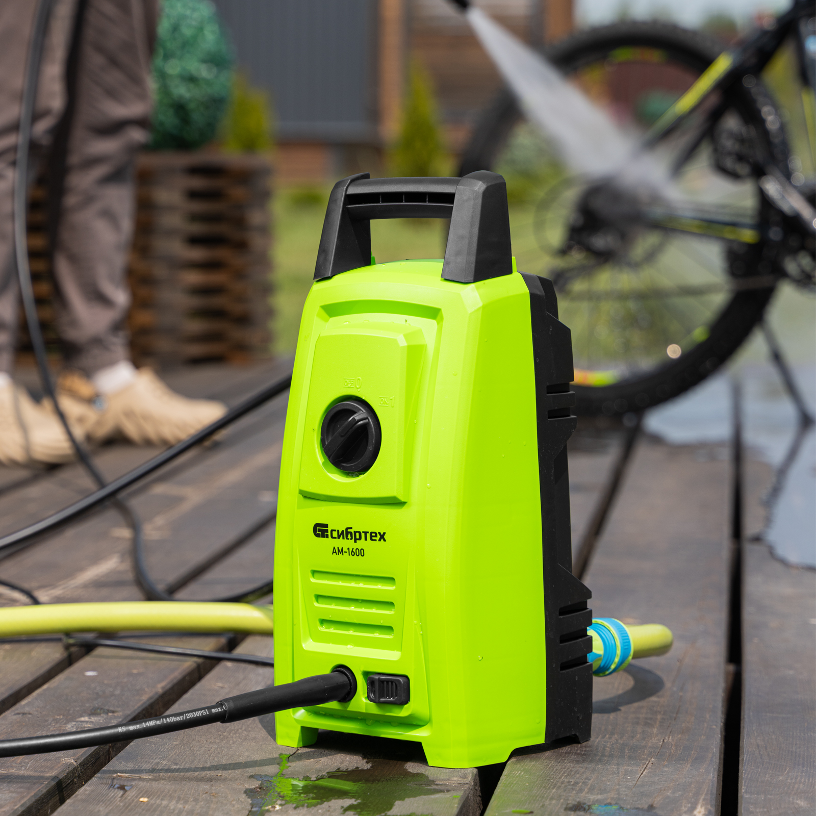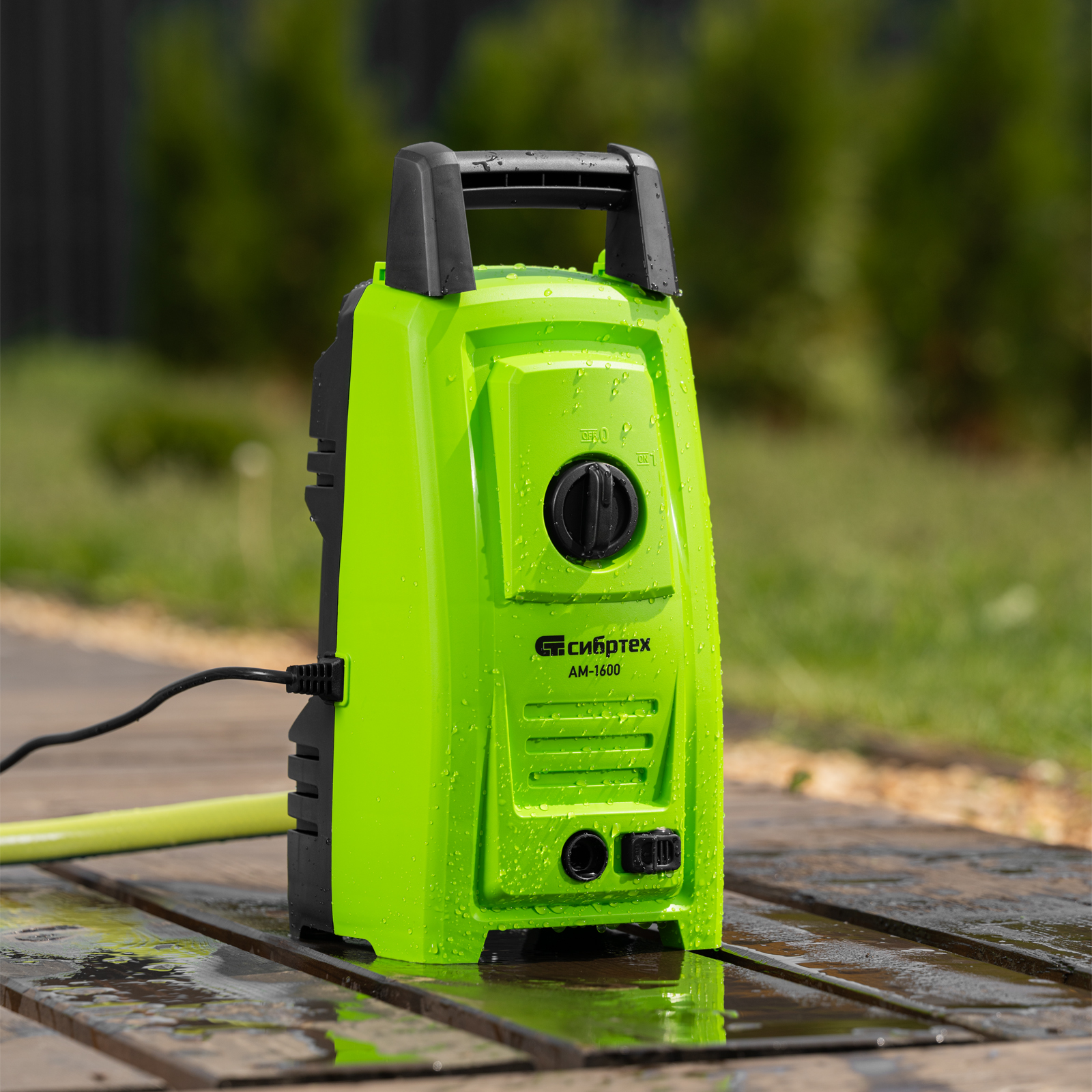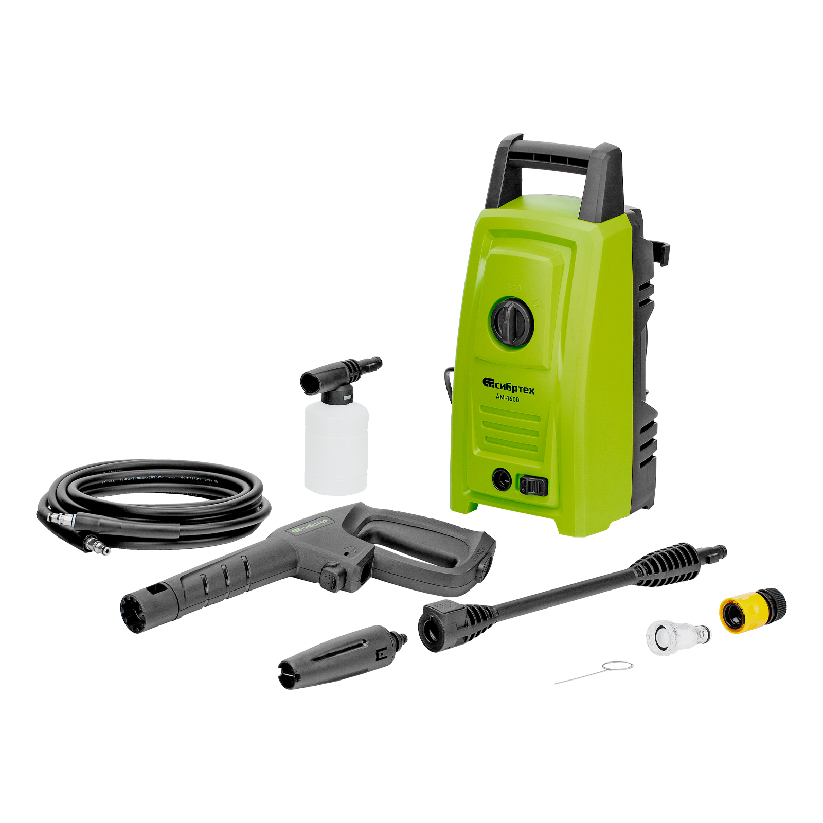 Переносная моечная машина высокого давления Сибртех AM-1600 58224 мощностью 1600 Вт и производительностью 330 л/ч подает струю воды под давлением 130 бар. Позволяет быстро очистить садовые дорожки, забор, стены строений, садовый инвентарь, уличную мебель, кузов автомобиля. Машина подключается к водопроводу, а также способна работать в режиме самовсасывания — в этом случае в качестве источника воды можно использовать любую емкость. Устройство будет полезно владельцам дачных участков.