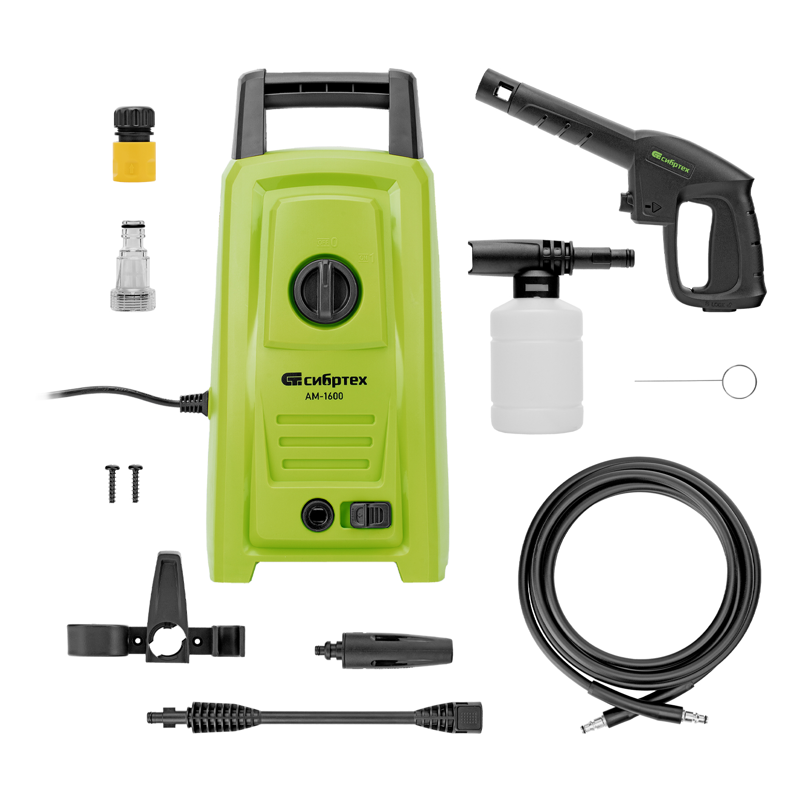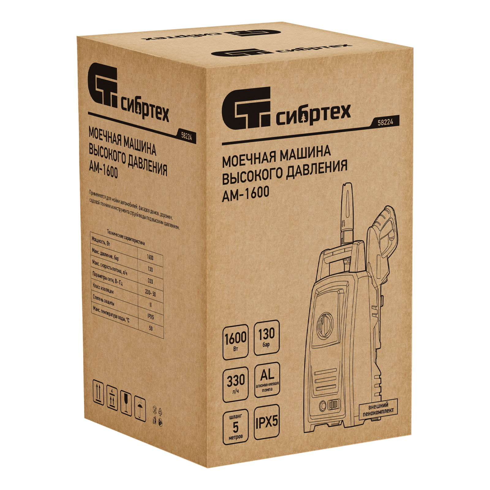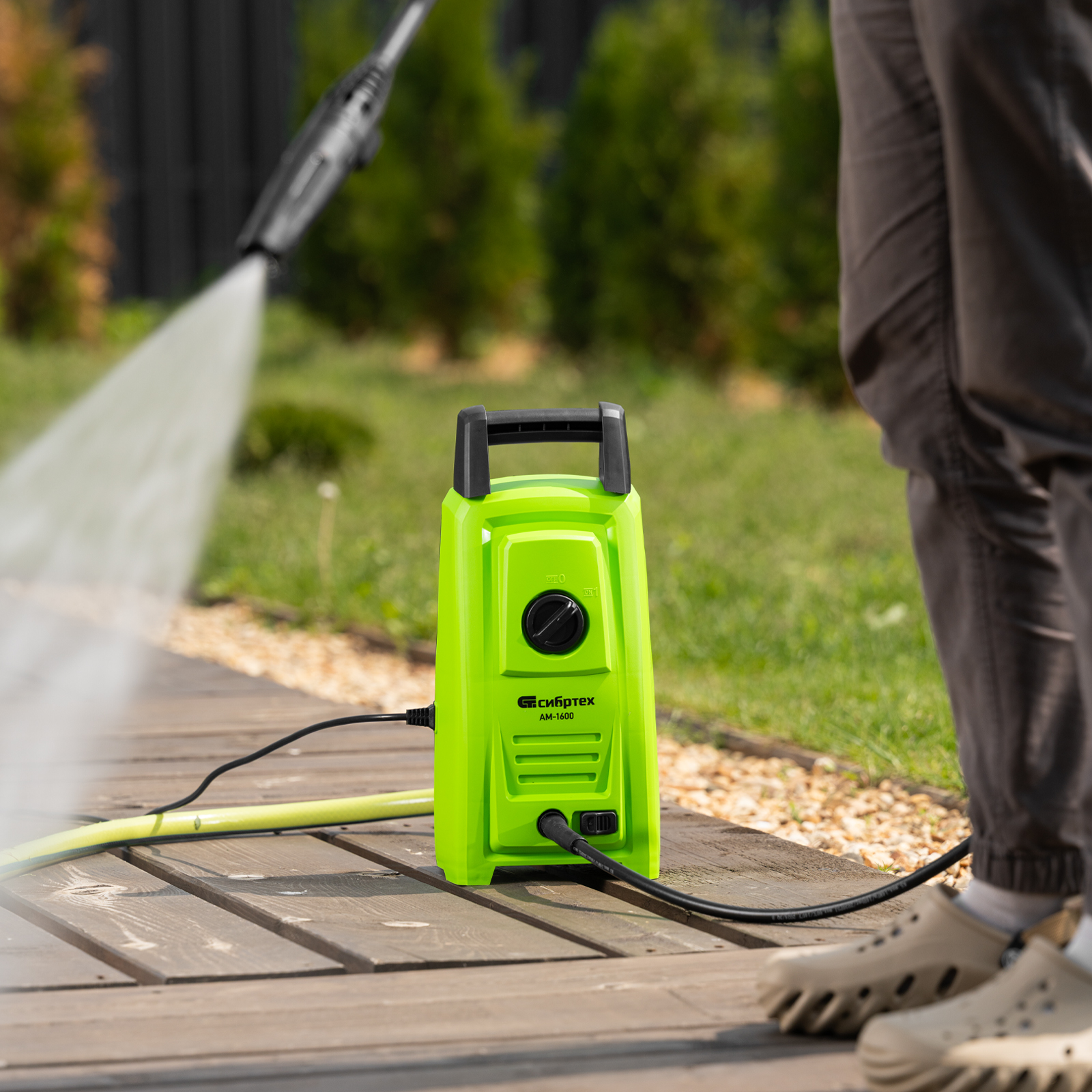 Переносная моечная машина высокого давления Сибртех AM-1600 58224 мощностью 1600 Вт и производительностью 330 л/ч подает струю воды под давлением 130 бар. Позволяет быстро очистить садовые дорожки, забор, стены строений, садовый инвентарь, уличную мебель, кузов автомобиля. Машина подключается к водопроводу, а также способна работать в режиме самовсасывания — в этом случае в качестве источника воды можно использовать любую емкость. Устройство будет полезно владельцам дачных участков.