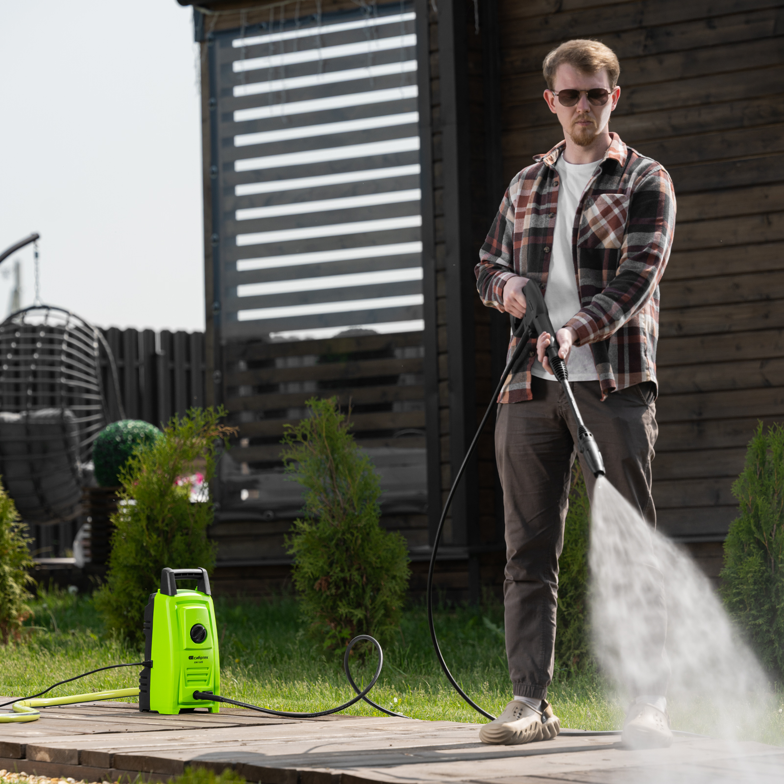 - Свободное передвижение по рабочей зоне — длина сетевого кабеля и шланга составляет 5 м, что позволяет реже перемещать мойку во время работы.
