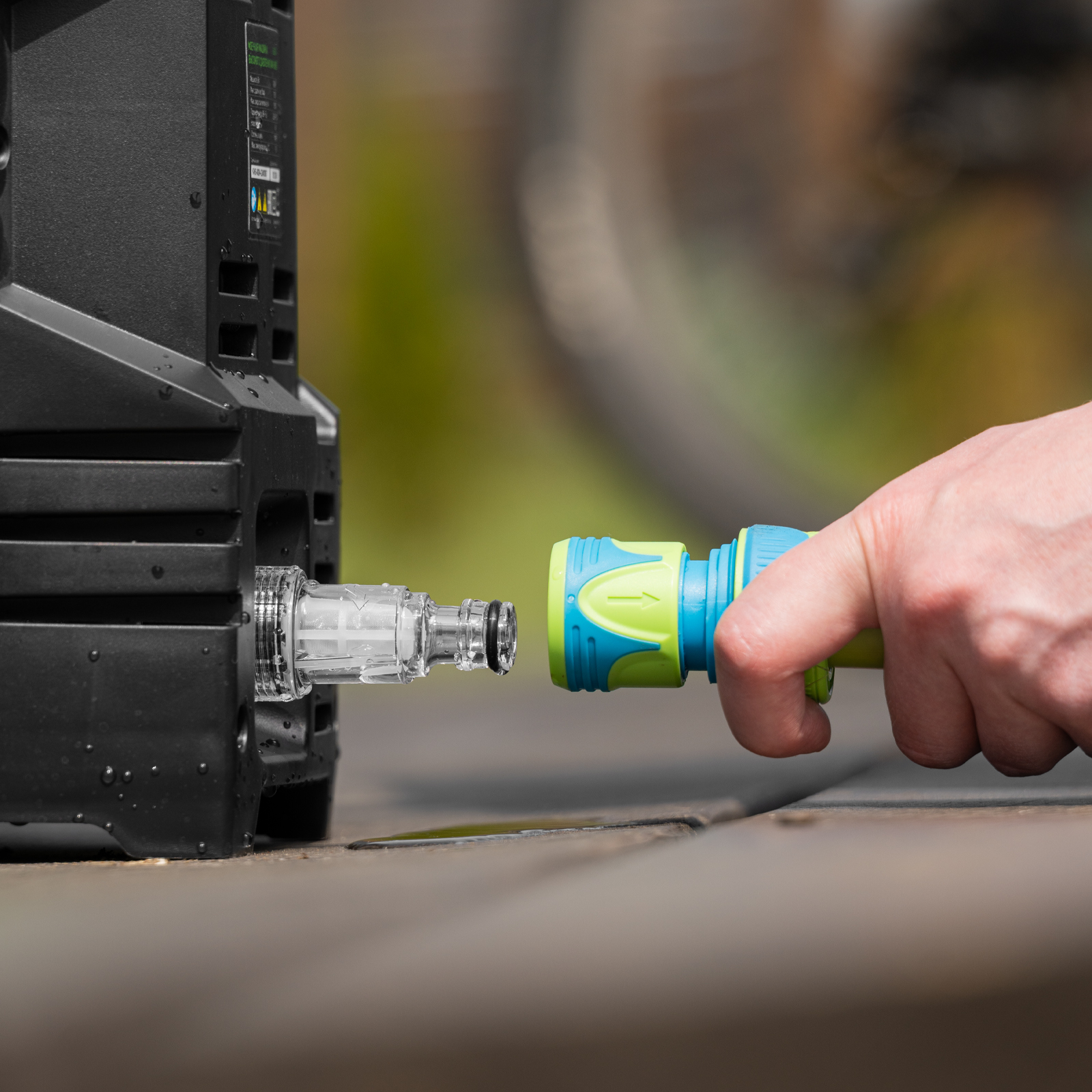 - Легкая подготовка к работе — быстросъемный адаптер позволяет подключить входной шланг одним движением.