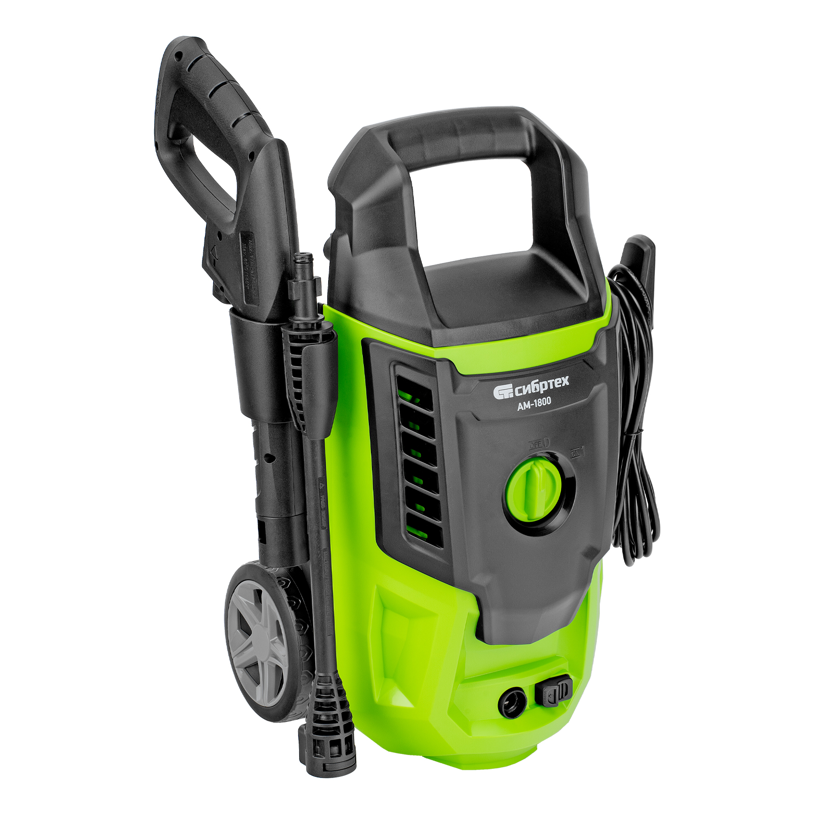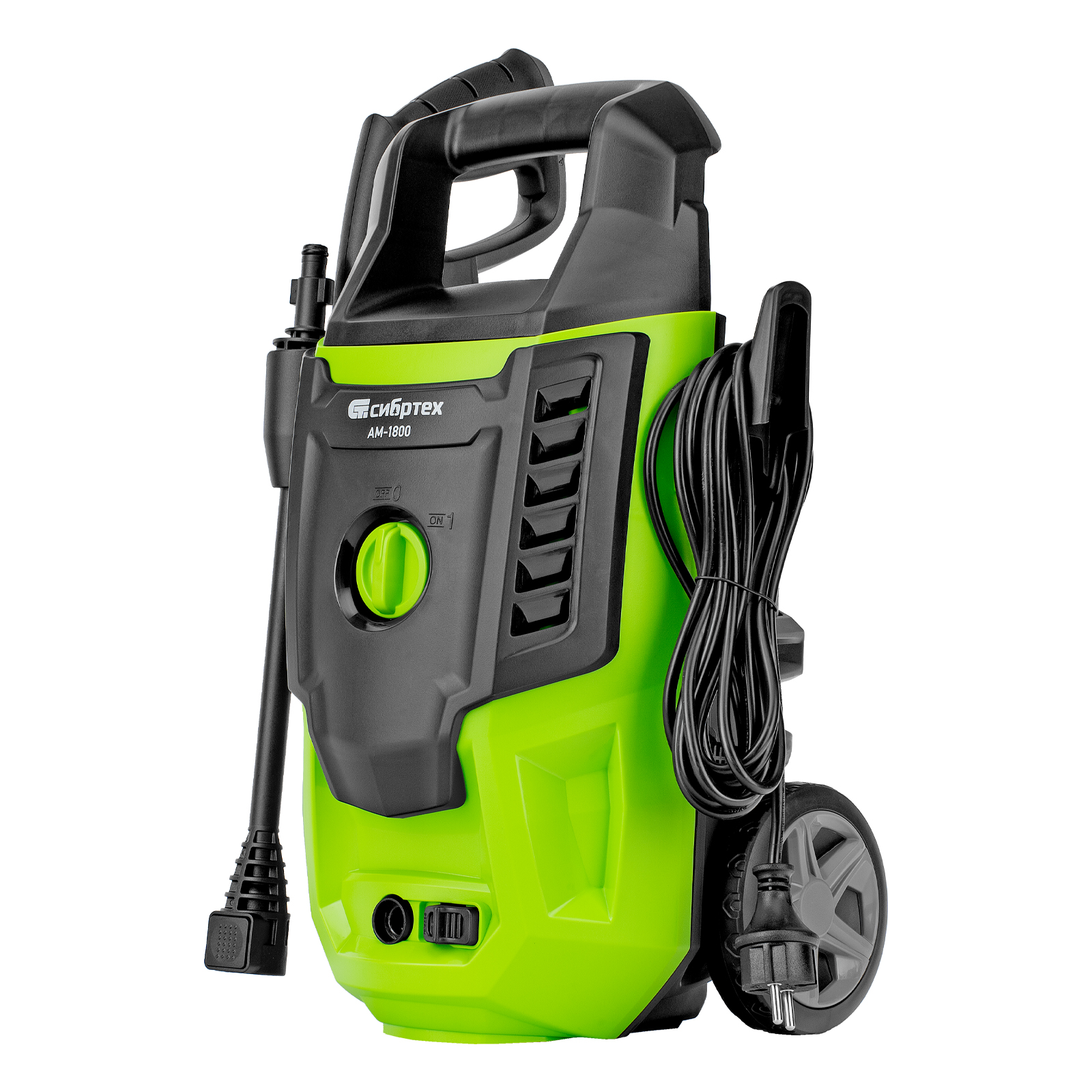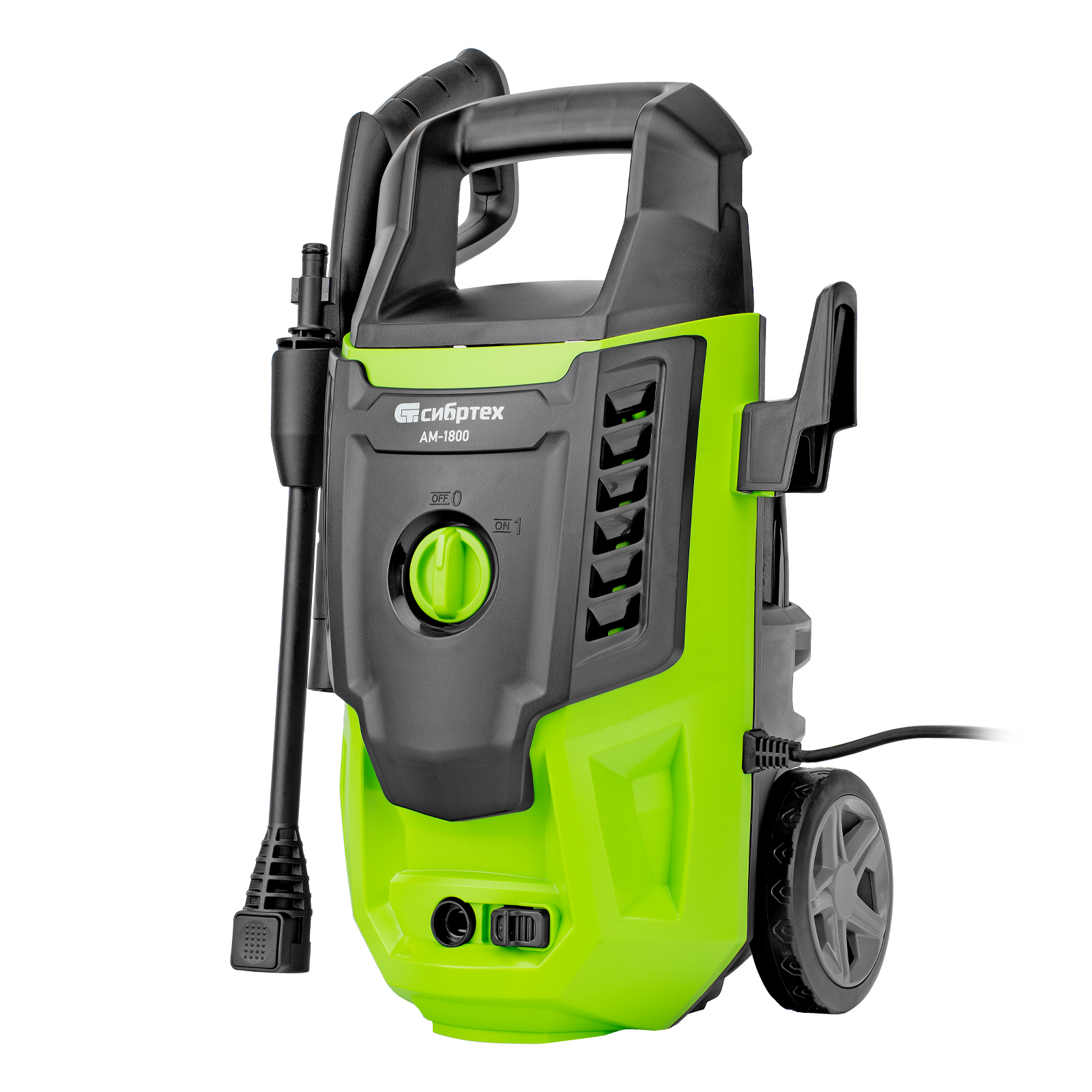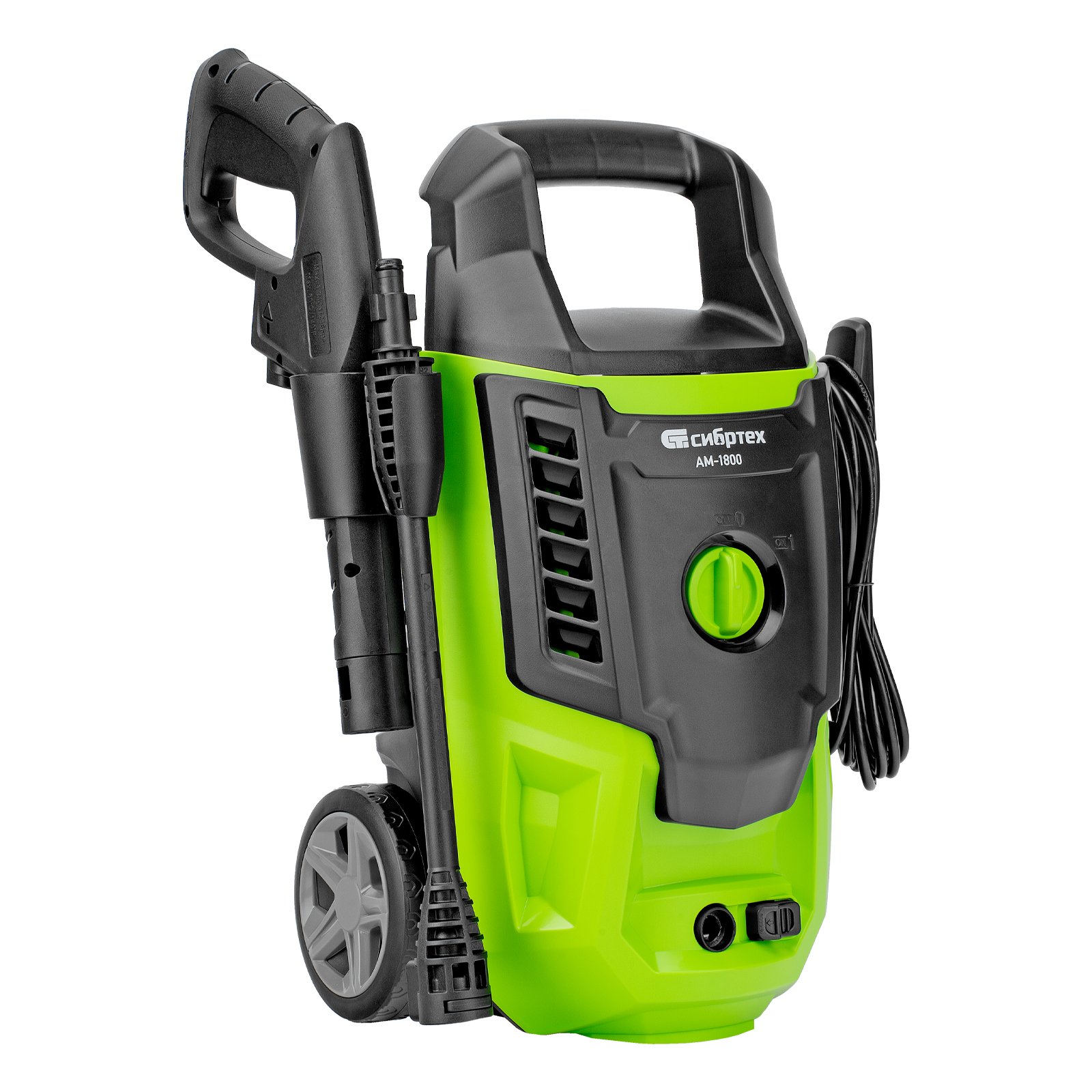 Колесная моечная машина высокого давления Сибртех AM-1800 58226 мощностью 1800 Вт и производительностью 350 л/ч подает струю воды 140 бар. Позволяет быстро очистить садовые дорожки, забор, стены строений, садовый инвентарь, уличную мебель, кузов автомобиля. Машина подключается к водопроводу, а также способна работать в режиме самовсасывания — в этом случае в качестве источника воды можно использовать любую емкость. Устройство будет полезно владельцам дачных участков.