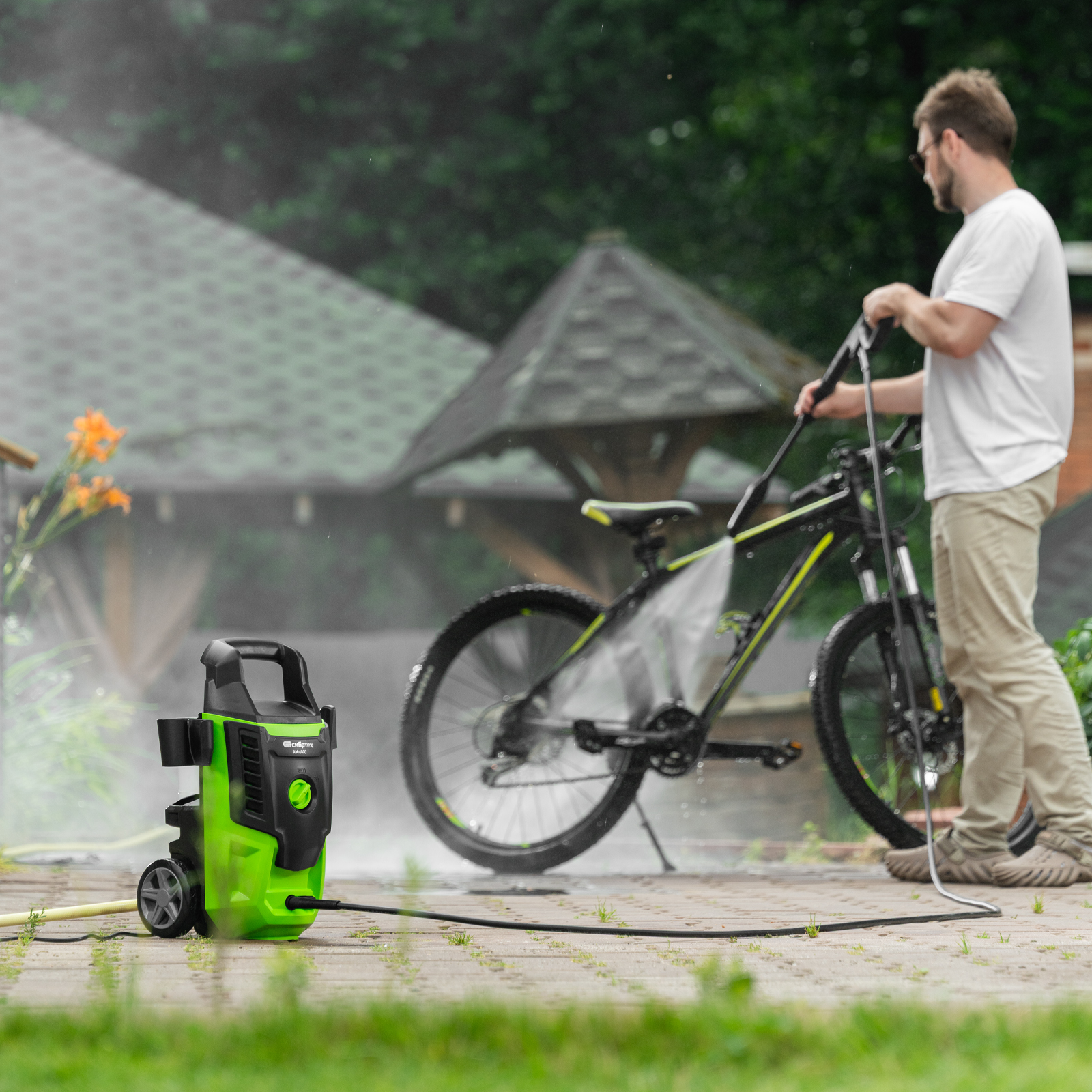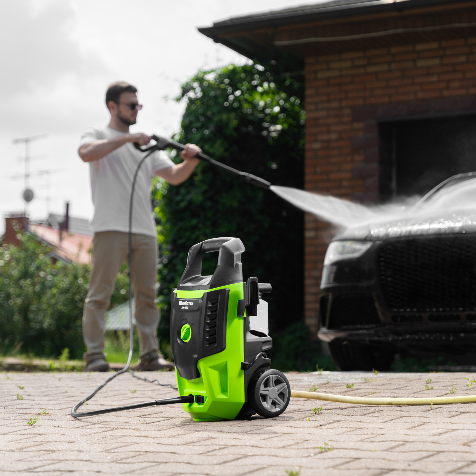 - Свободное передвижение по рабочей зоне — длина сетевого кабеля и шланга составляет 5 м, что позволяет реже перемещать мойку во время работы.