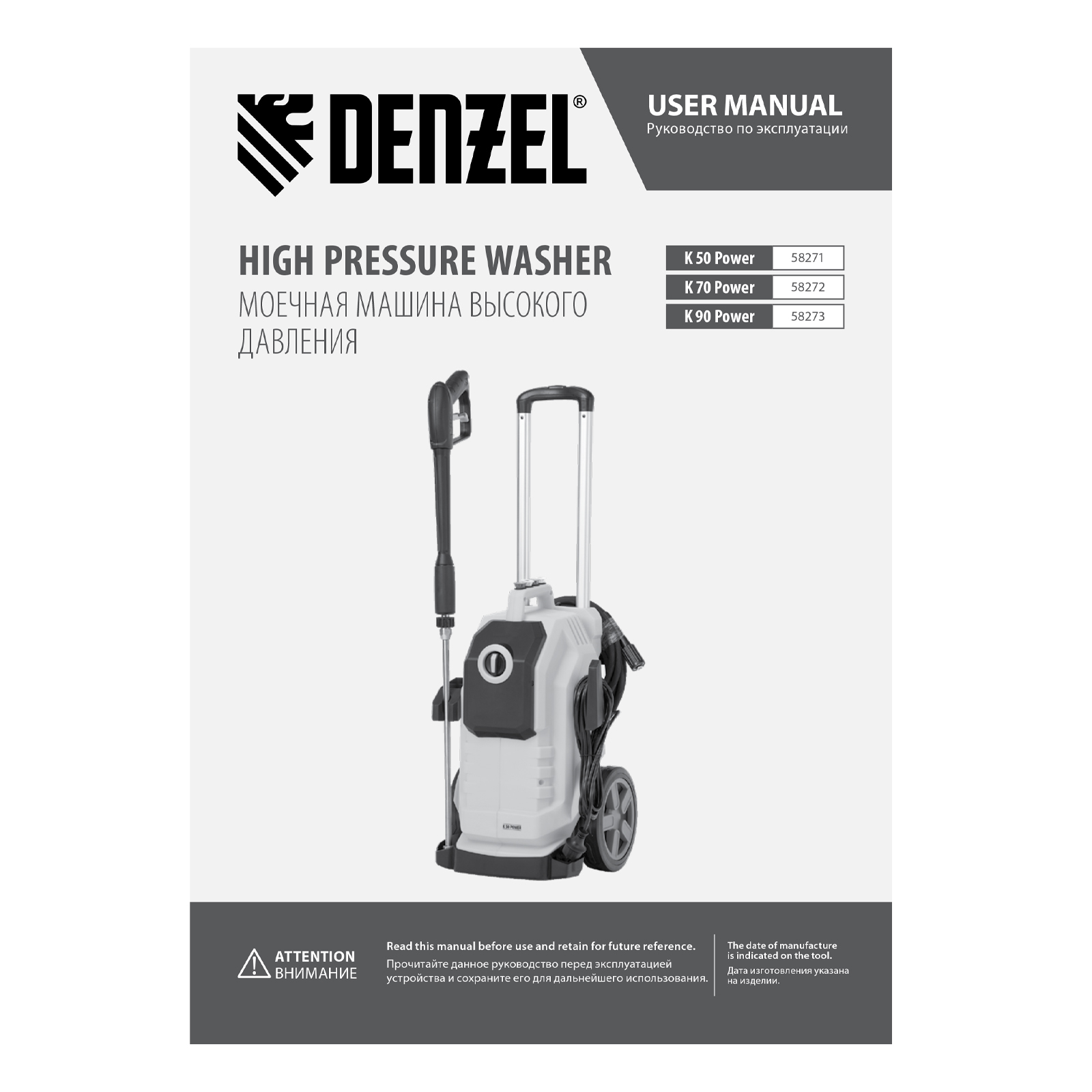 Моечная машина высокого давления Denzel K 50 Power 58271 мощностью 2100 Вт и производительностью 600 л/ч, с асинхронным двигателем, обеспечивает подачу воды под давлением до 150 бар. Позволяет при помощи струи воды отмыть фасад дома, дорожку, тротуар, садовую мебель, технику и инструменты, автомобиль, окна и т.д. Машина оснащена самовсасывающим насосом, поэтому может работать даже при отсутствии доступа к водопроводной сети, забирая воду из открытого источника. Надежный асинхронный двигатель устойчив к нагрузкам и не требует сложного обслуживания. Машина оптимальна для бытового применения.