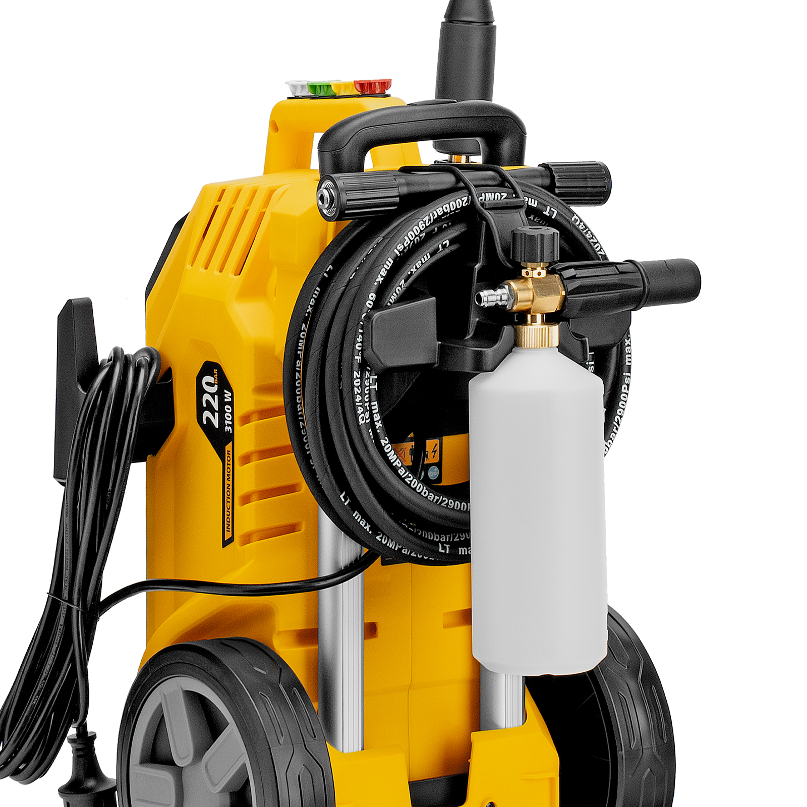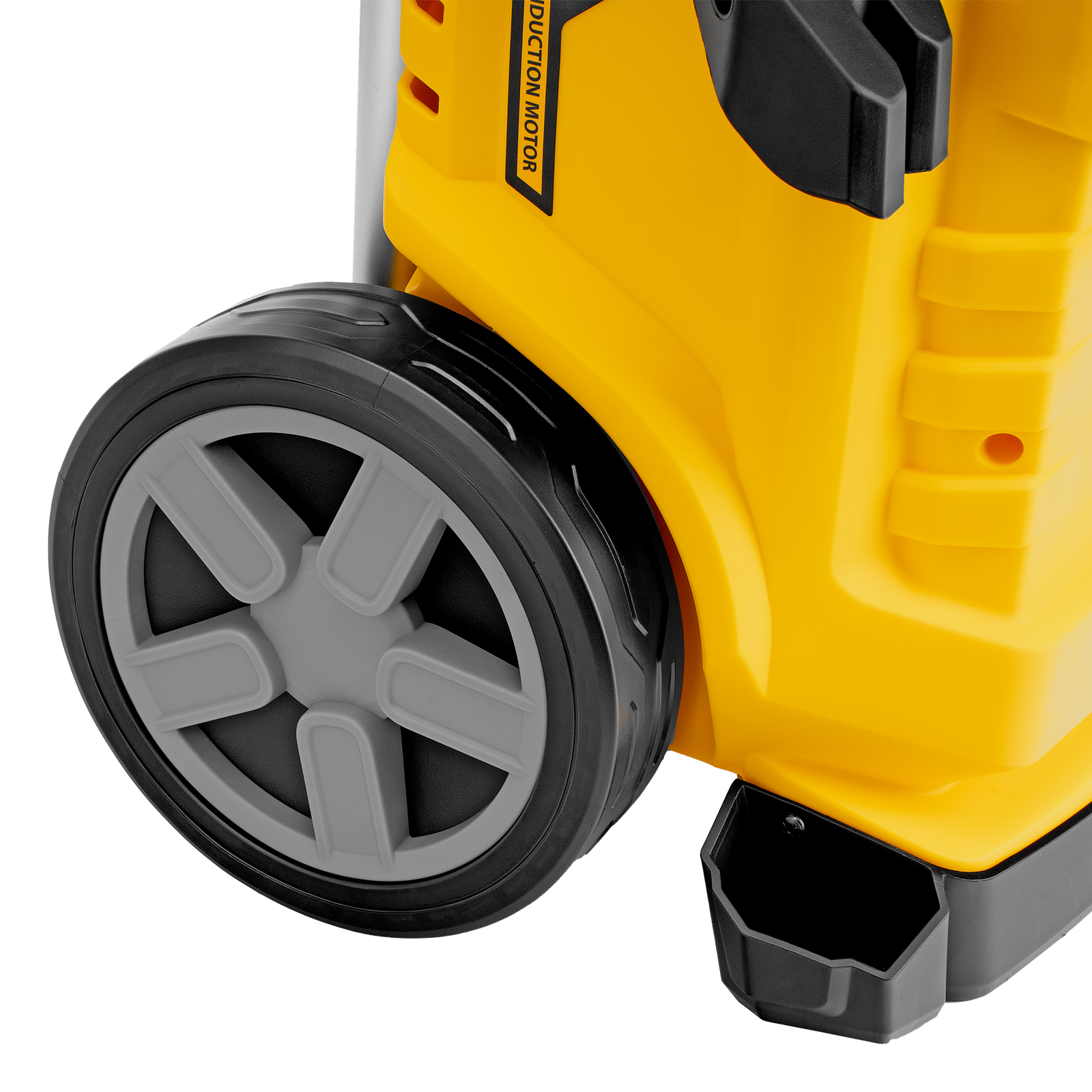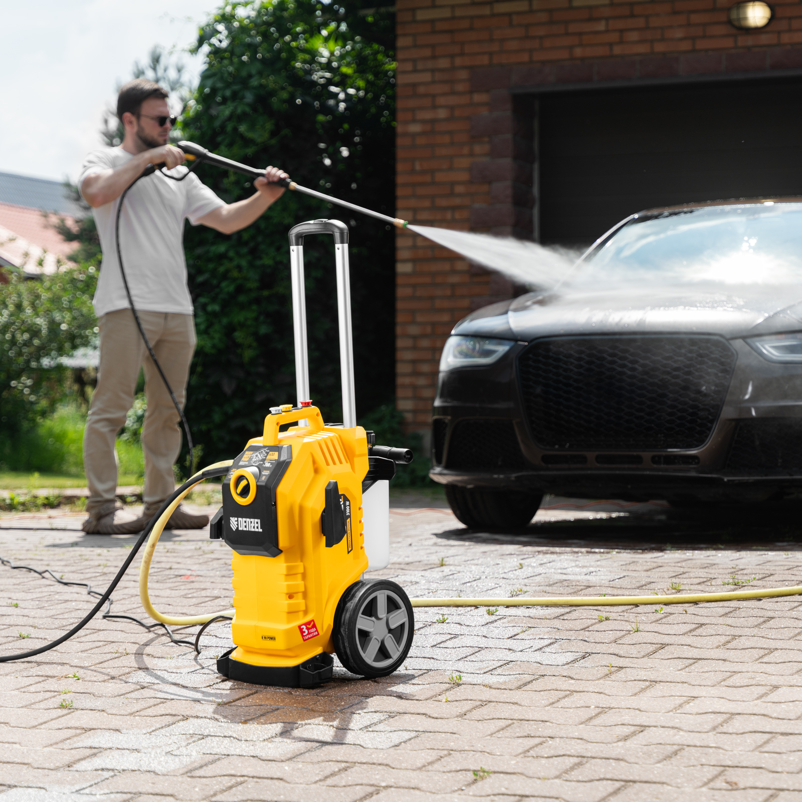 - Защита от непроизвольного запуска — для включения машины необходимо разблокировать рычаг моечного пистолета.