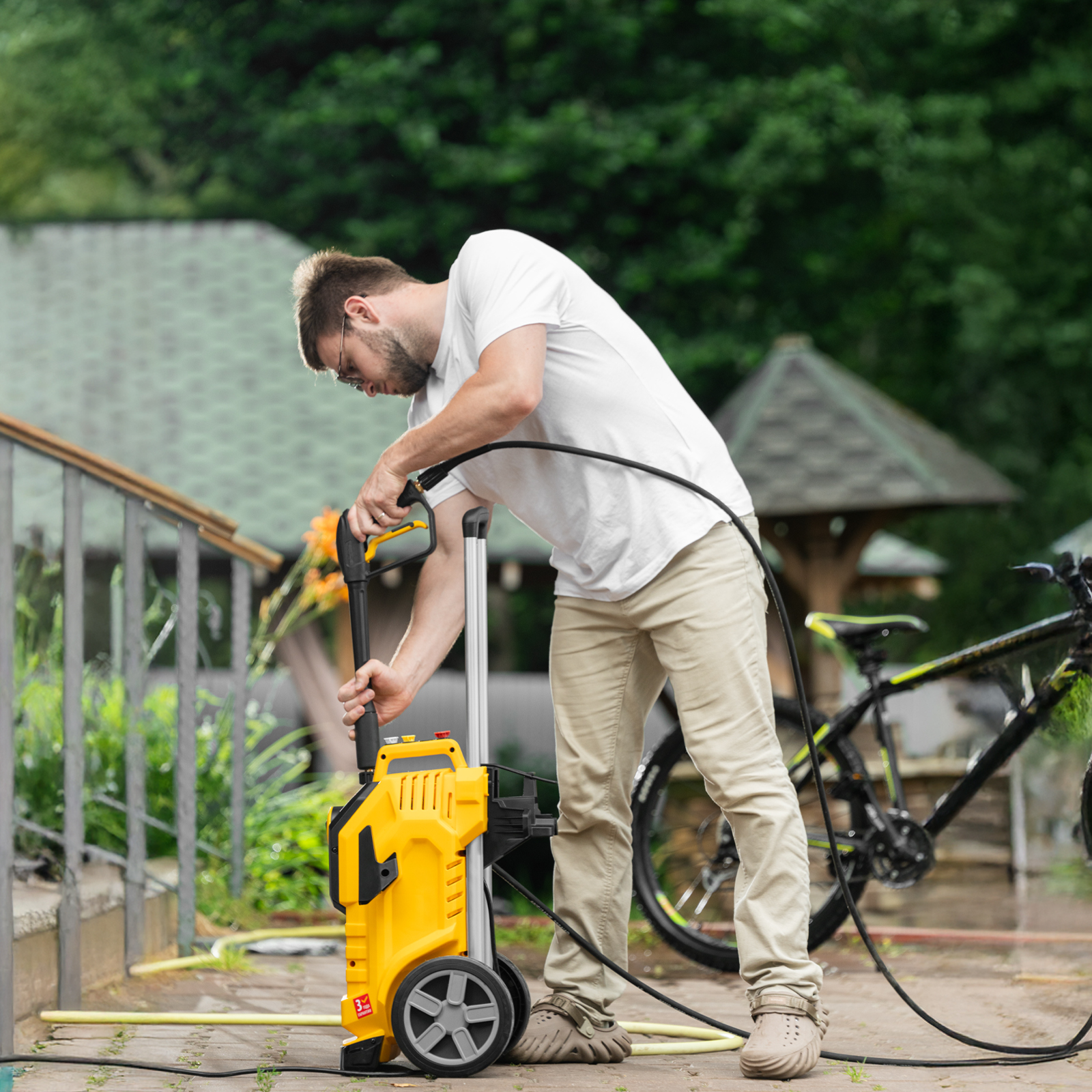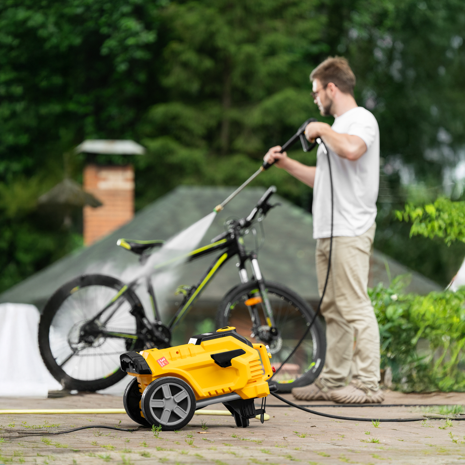 - Свободное перемещение по участку — длина шланга высокого давления составляет 8 м, длина кабеля — 5 м.
